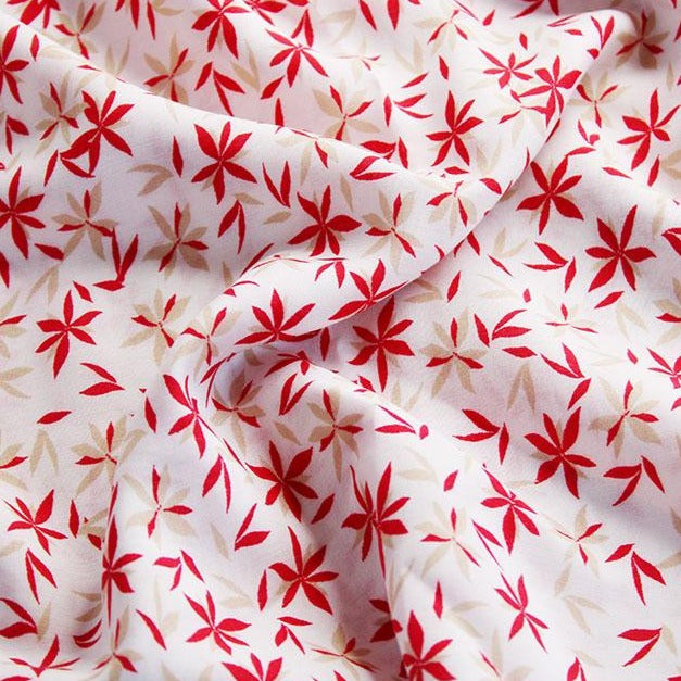 Swish around in style with this stunning silky viscose that has a delicious drape which is perfect for drapey skirts, elegant summer dresses and easy breezy tops. We love the simple floral and leaf design in a two-tone print of red and natural on white for a summery feel.- Composition: 100% viscose