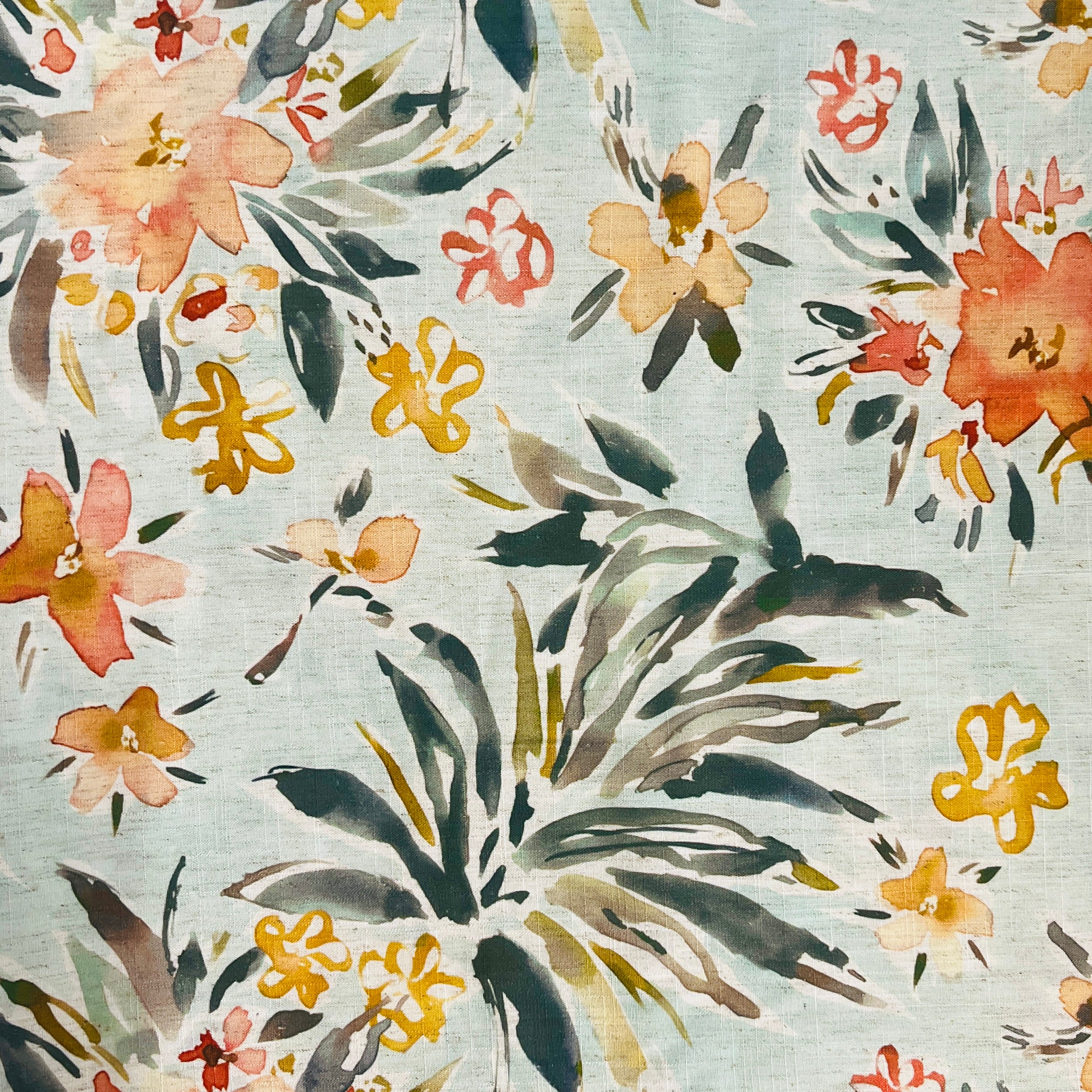 Hibiscus Floral Mint Printed Linen Viscose Fabric