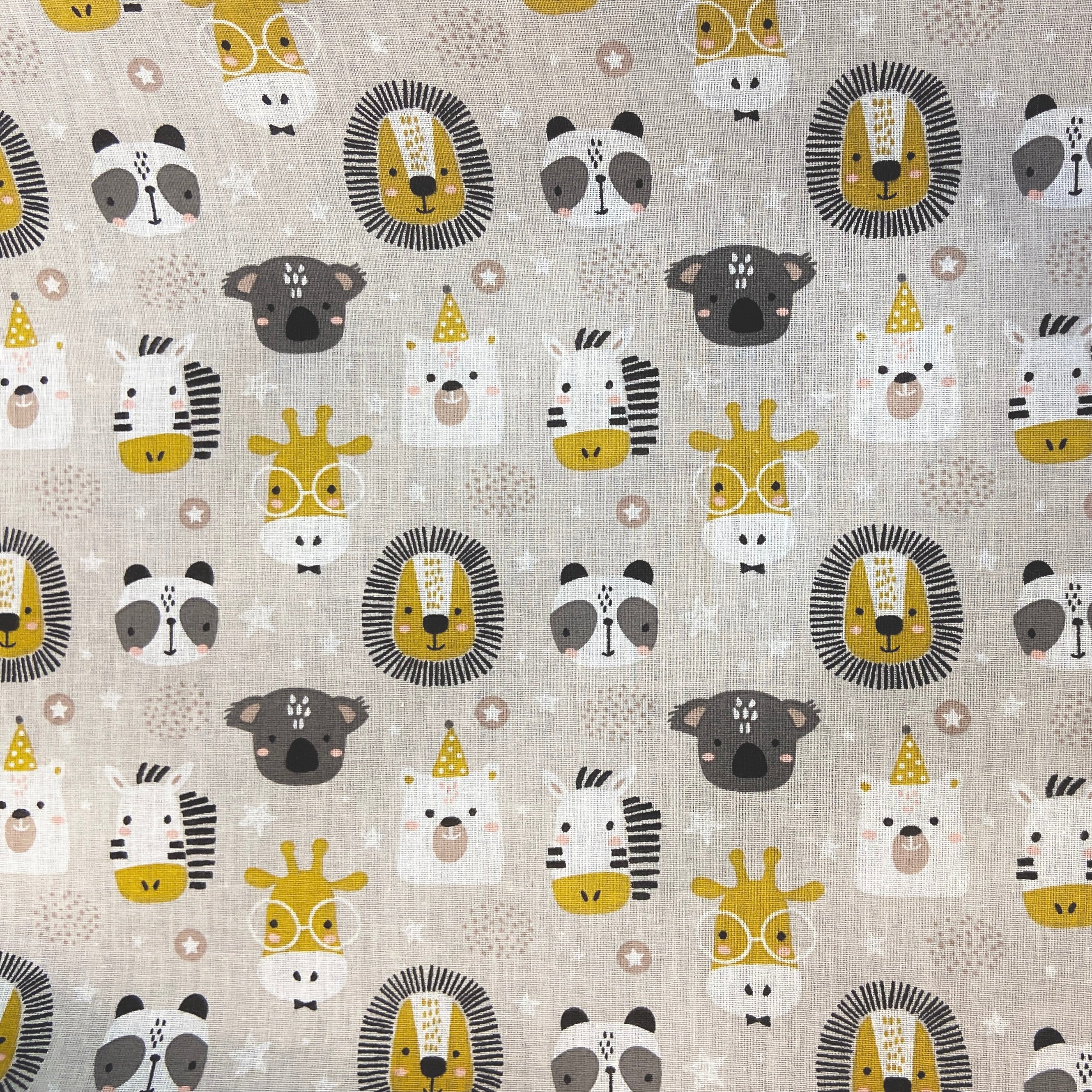 Little Animal Heads Grey Dressmaking Cotton Fabric