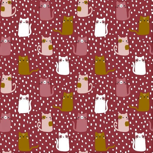 Meow Berry Organic Printed Sweatshirting Fabric
