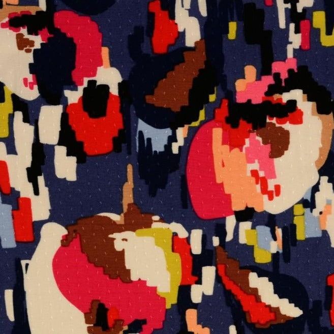 Make a bold statement with this punchy print! Made from viscose, it also has a lovely crepe texture and plenty of drape, making it ideal for everything from tops to trousers. We love the bold abstract 'painted' style print for an eye-catching garment!