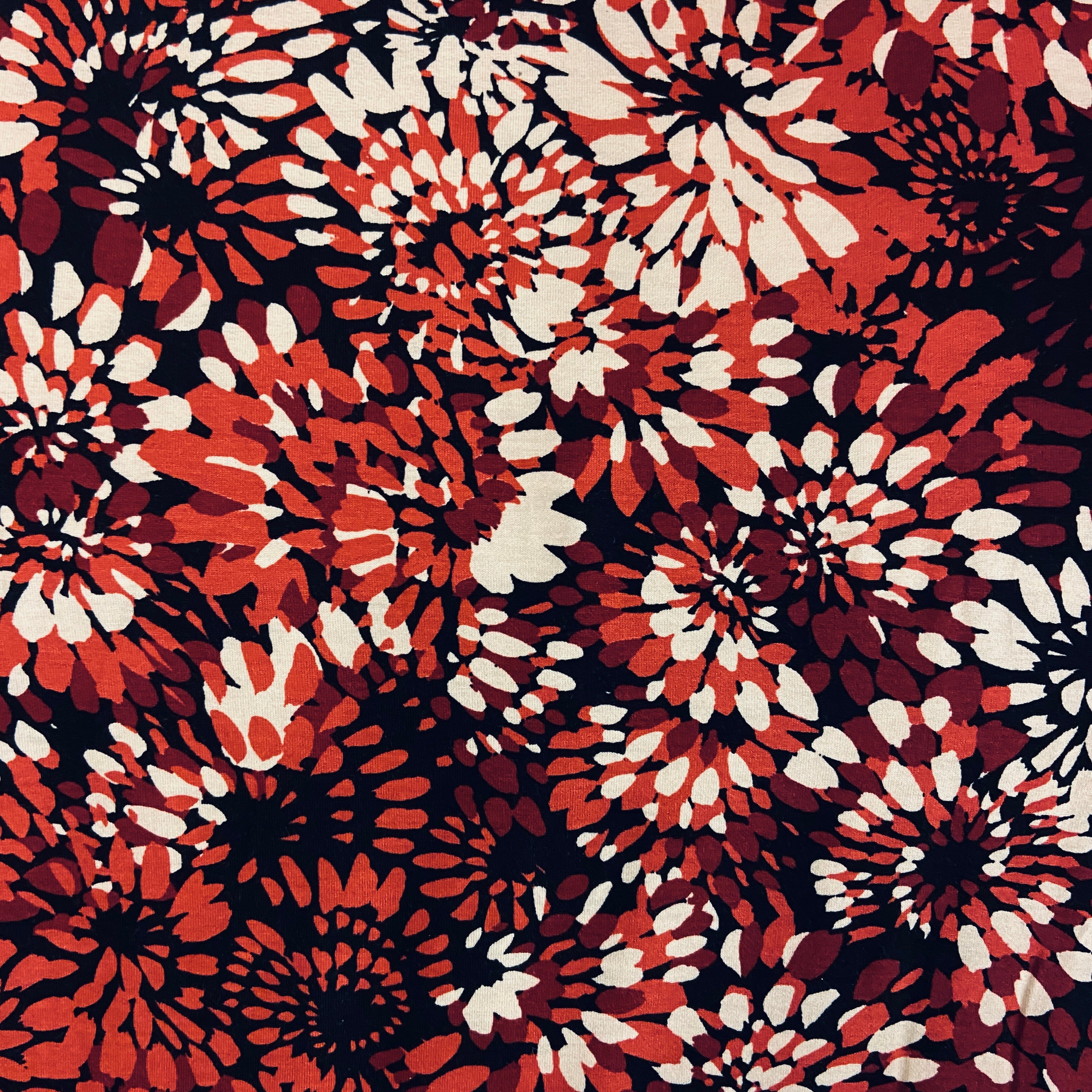 Make comfy but stylish garments with this gorgeous printed viscose jersey. As a lighter weight knit, it's ideal for things like tops and dresses that need a bit of drape, and we reckon this gorgeous bold print is just the ticket! Perfect for wrap dresses, ruched tops and summer skirts.- Composition: 95% viscose, 5% Elastane