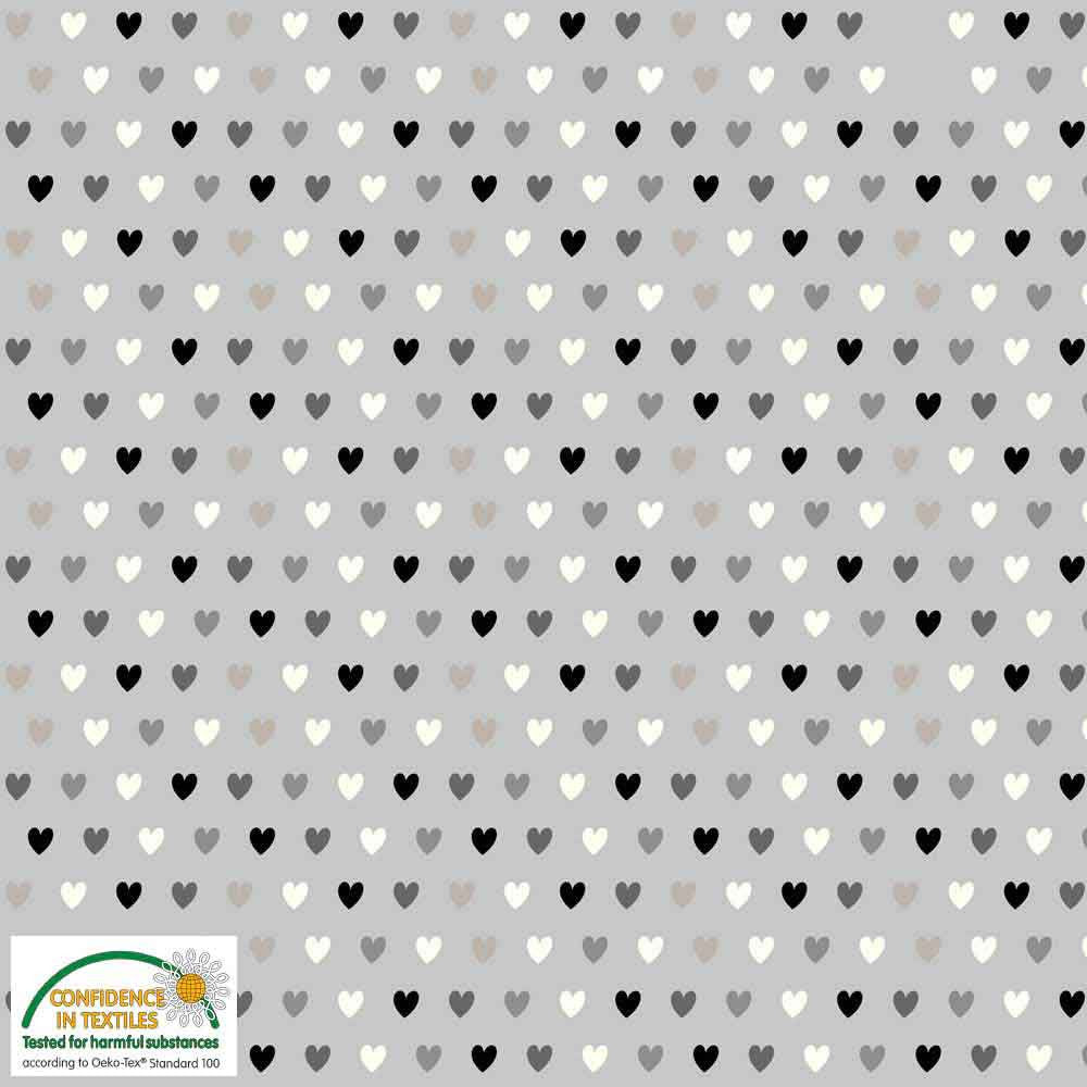 Stof of Denmark Grey Hearts Avalana Jersey Fabric