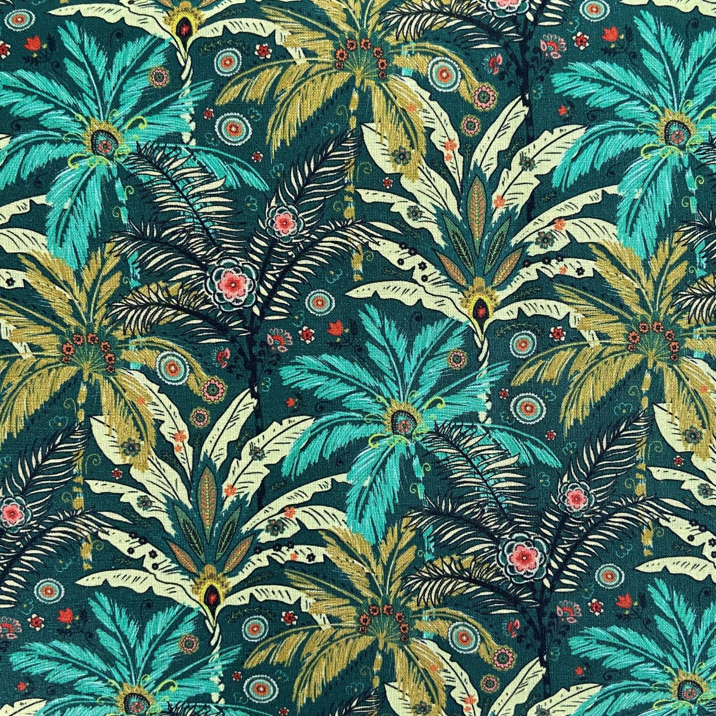 Make something sumptuous with this rich and indulgent printed cotton fabric. Featuring a stunning feathery foliage design in rich shades of forest green, jade and turquoise, it's ideal for those that love a print with a bit of oomph! Made from breathable 100% cotton and with a wider width, it's ideal for dressmaking - make some funky palazzo trousers, a cute tropical sundress or a fun shirt!