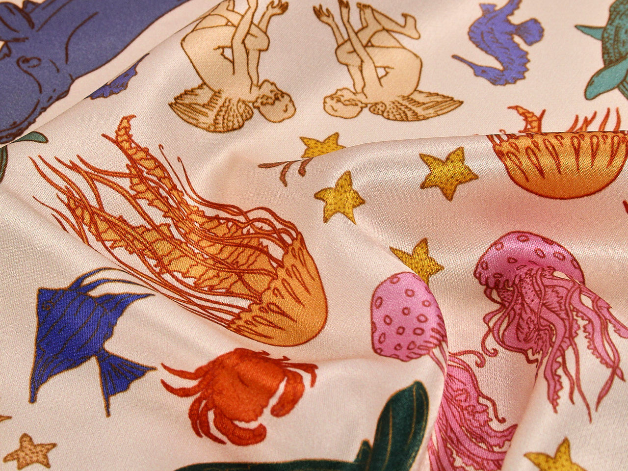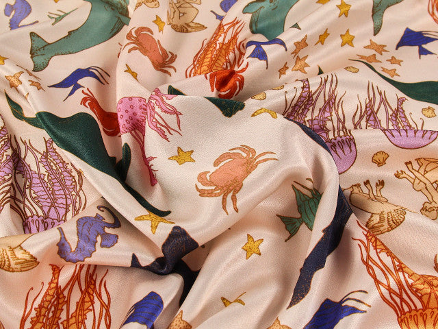 Fabric Godmother Neptune Ivory ECOVERO™ Viscose Satin Fabric