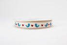 Add a bit of folk styling to your latest project. This beautiful ribbon features pretty bluebirds (quite literally) mixed in with hearts and edge-stitching.
