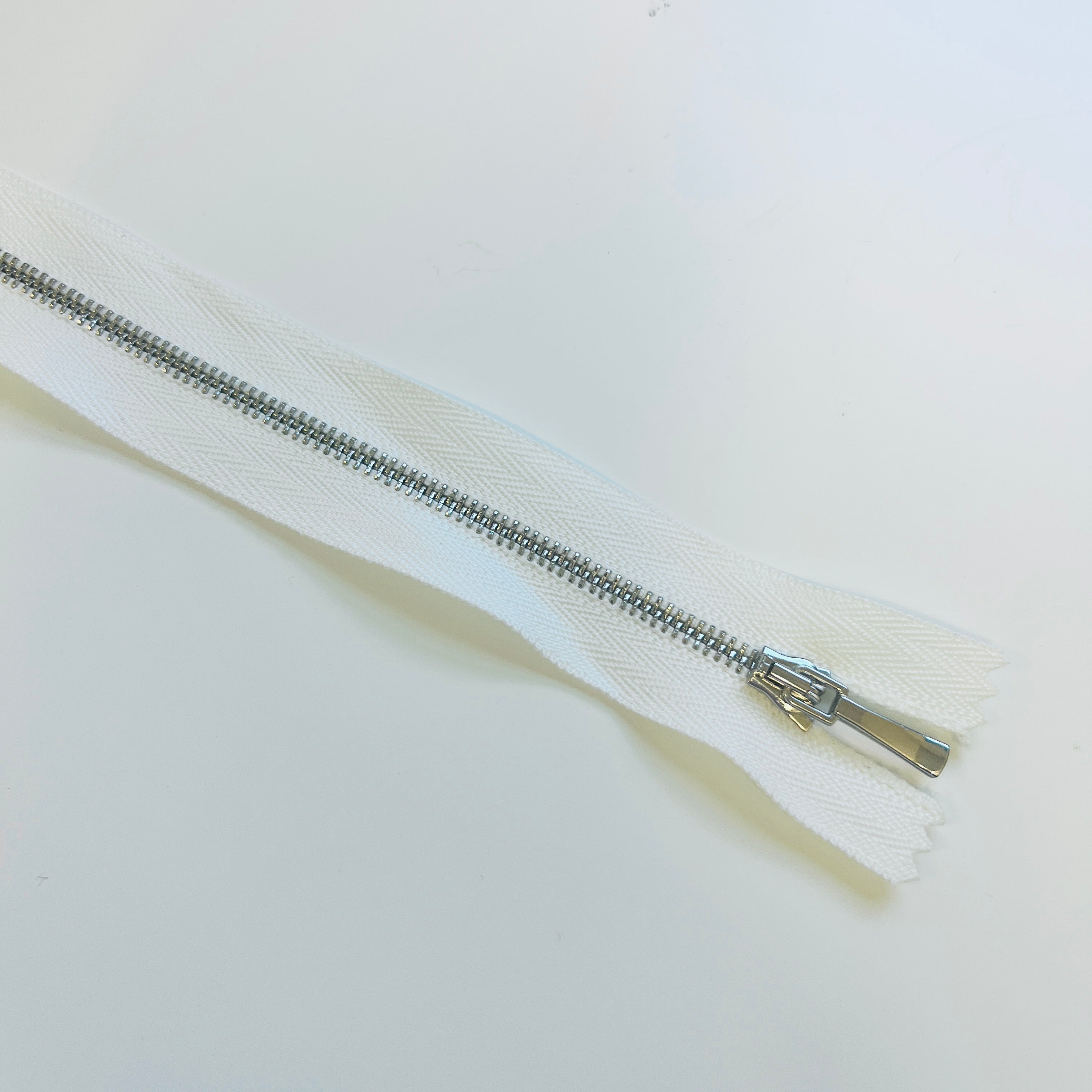 30cm/12" Fine Metal Dress Zip - Ivory/Silver