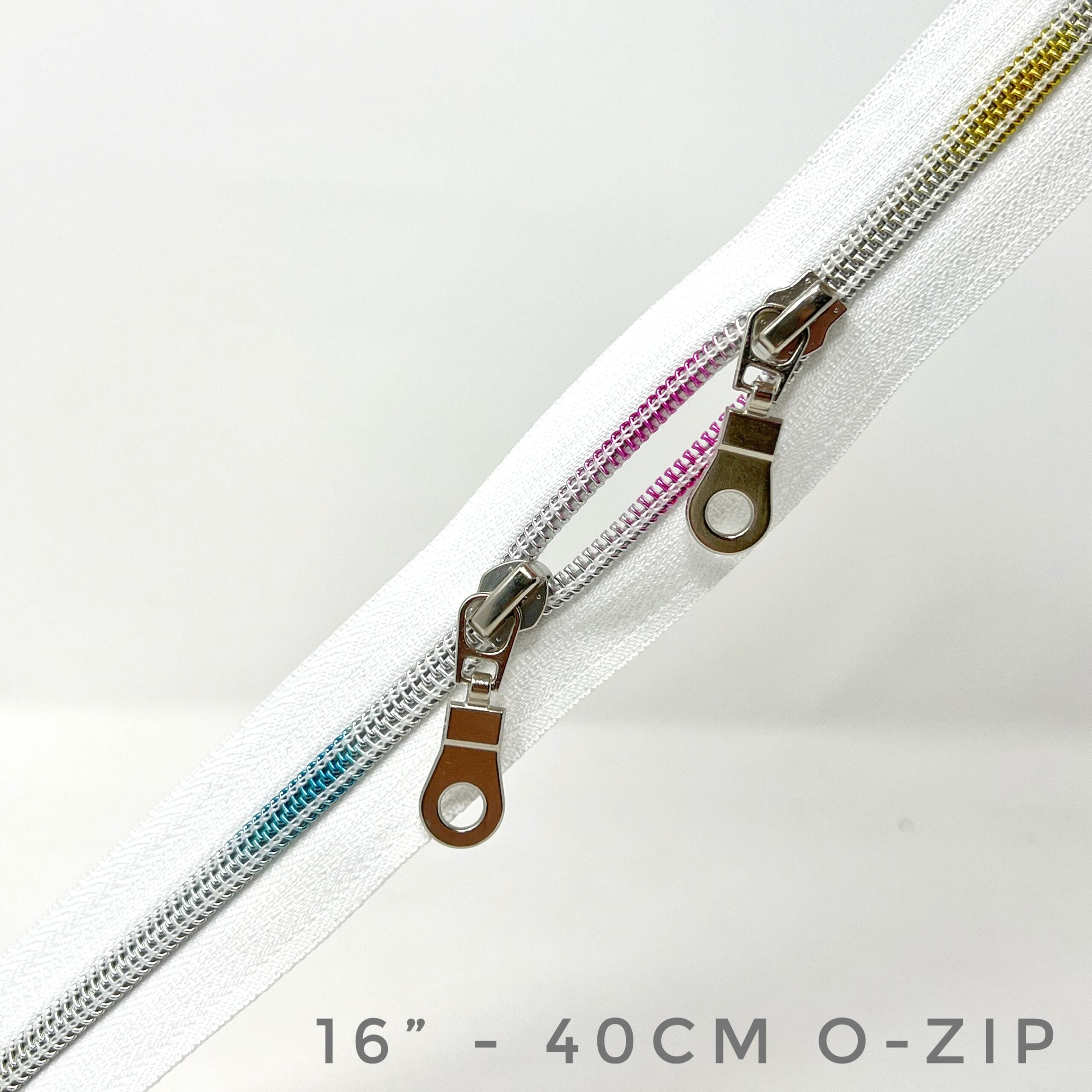 40cm/16" Rainbow Double Slider "O" Zip - White