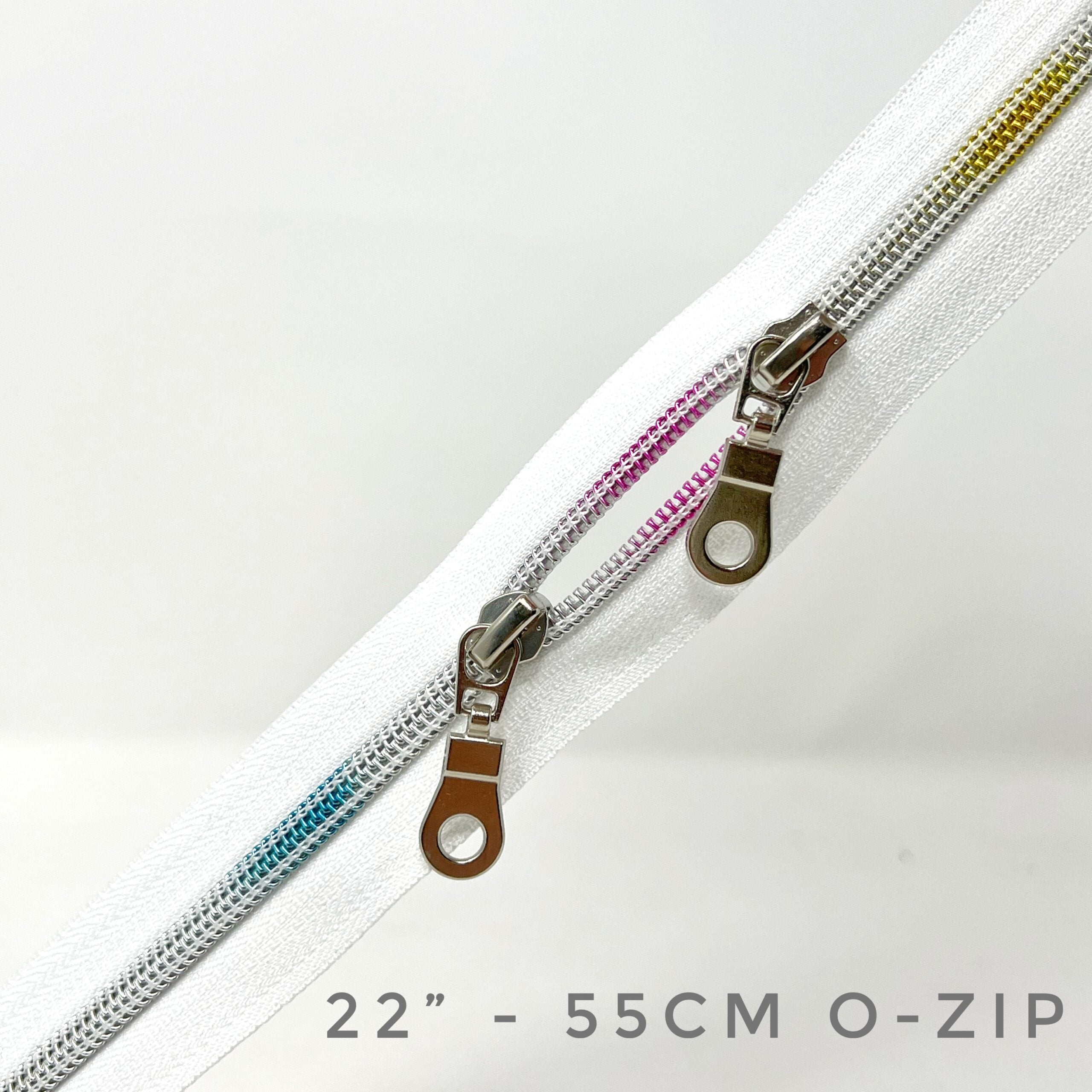55cm/22" Rainbow Double Slider "O" Zip - White