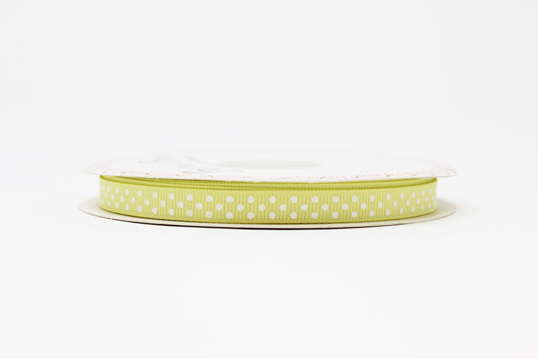 A simple but sweet polka dot ribbon in a pretty lemon colour with polka dots. Great for some bunting, bags or even finishing off a dress or top.