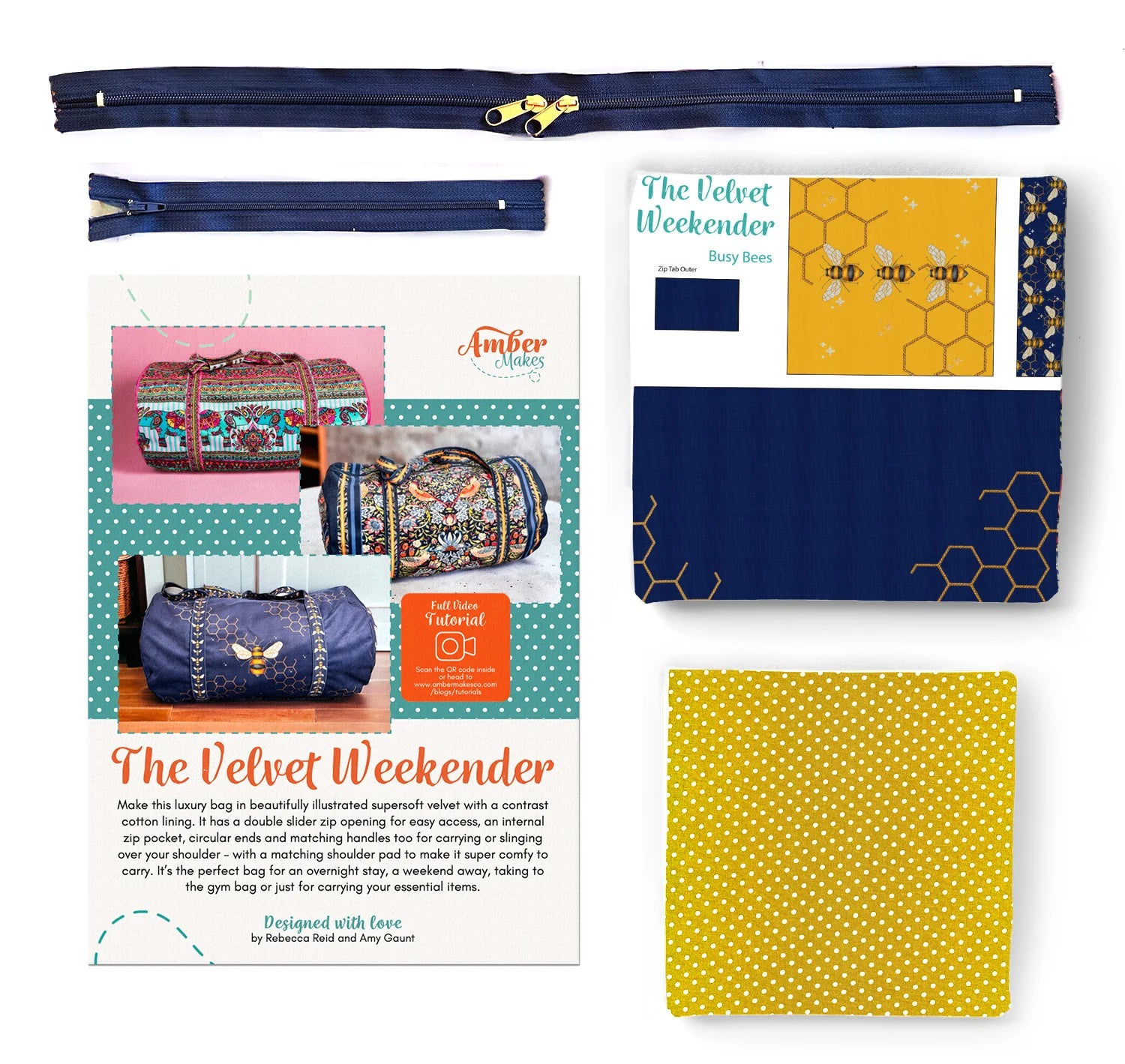 Amber Makes Luxury Velvet Busy Bees Weekender Bag Sewing Kit