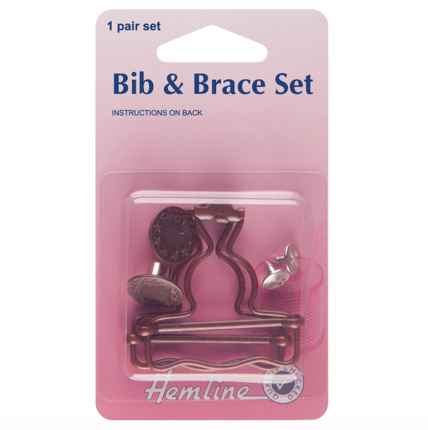Making dungarees or similar? Grab yourself one of these practical and pretty brace sets in stunning bronze. The pack includes a pair of brace fastenings to use on your garments, as well as the buttons.