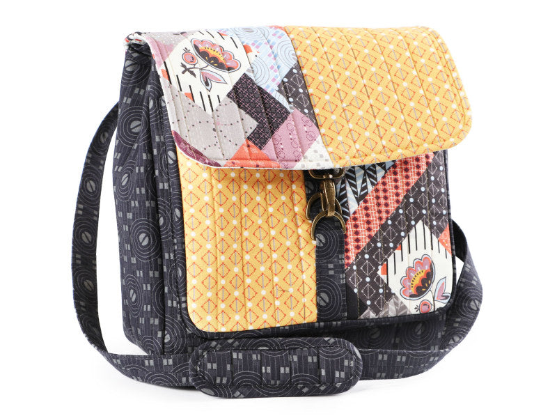 Switchback is designed to be made with a variety of fabrics, alternating them for a fun color-block style. The color-block design shows on both the front pocket and flap AND on the bag back. Adjustable straps make it easy to carry the bag in a variety of ways: over the shoulder, cross body, or as a backpack.
