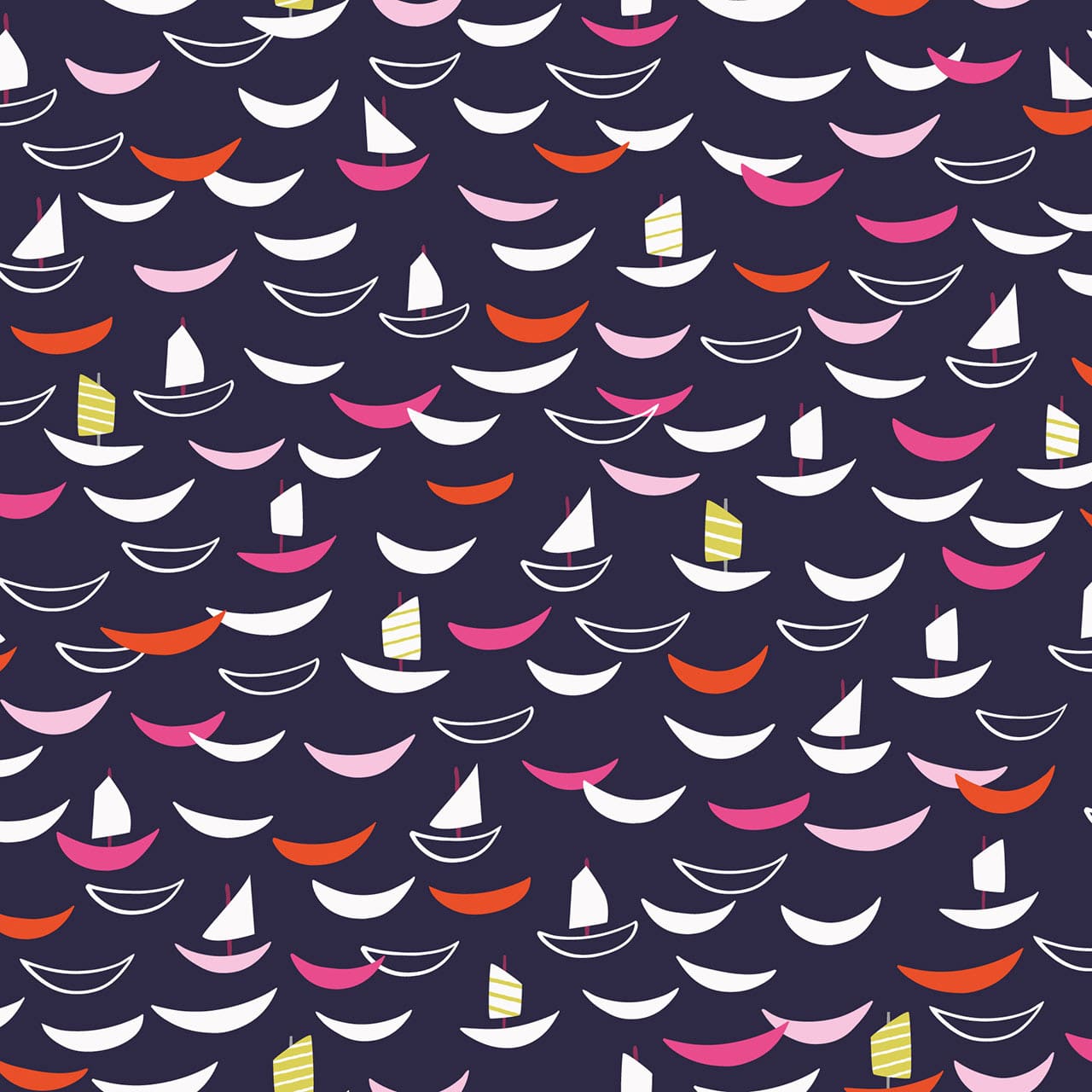 The Silk Roads collection celebrates the amazing colours, sights and sounds of the historical silk road - a traditional trading route from east to west. Full of vibrant shades and 'exotic' sights, it's a collection that explores a riot of colour and style! This simpler print is reminiscent of the ships making their way from the East full of precious cargo... Perfect for quilts, clothing, accessories and more!