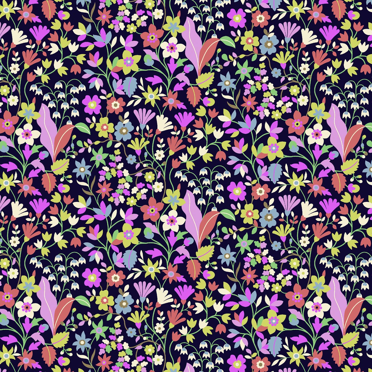 Dashwood Ace Lawn Kaleidoscope - Floral Garden Black - Cotton Lawn Fabric