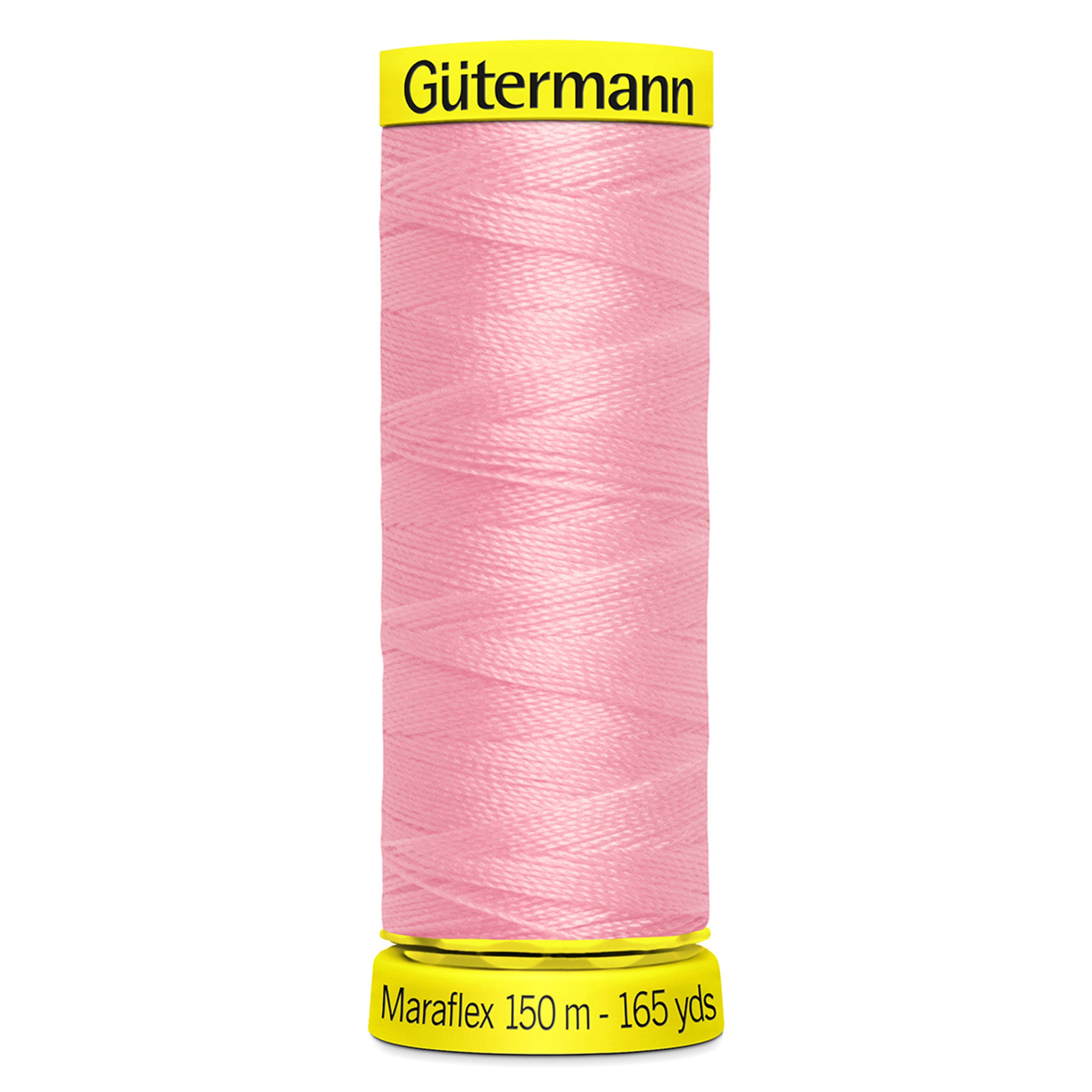 Try this amazing new elastic thread from sewing thread experts Gutermann. This specialist thread has a high amount of stretch that makes it ideal for sewing with knit fabrics using a straight stitch instead of zigzag, without the thread snapping.