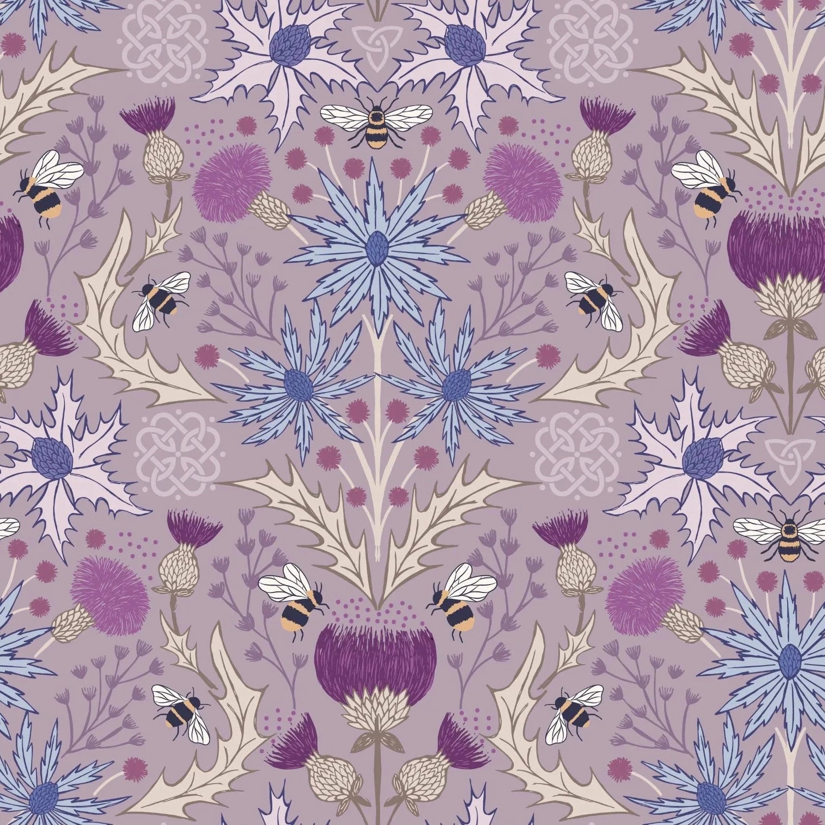 All hail mother nature, in this gorgeous new collection from Lewis and Irene! Mixing some of their most-loved collections, this beautiful Celtic Dreams print celebrates the humble celtic thistle, alive with the sound of bees living among the wilds of nature.
