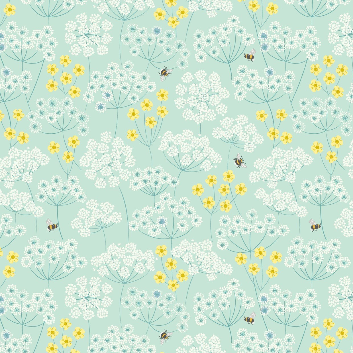 Lewis & Irene Clearbury Down - Wild Meadows with Bees Light Duck Egg - 100% Cotton Fabric
