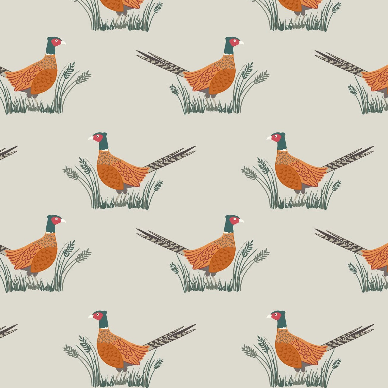 Lewis & Irene Country Life Reloved - Pheasants Dark Cream - 100% Cotton Fabric