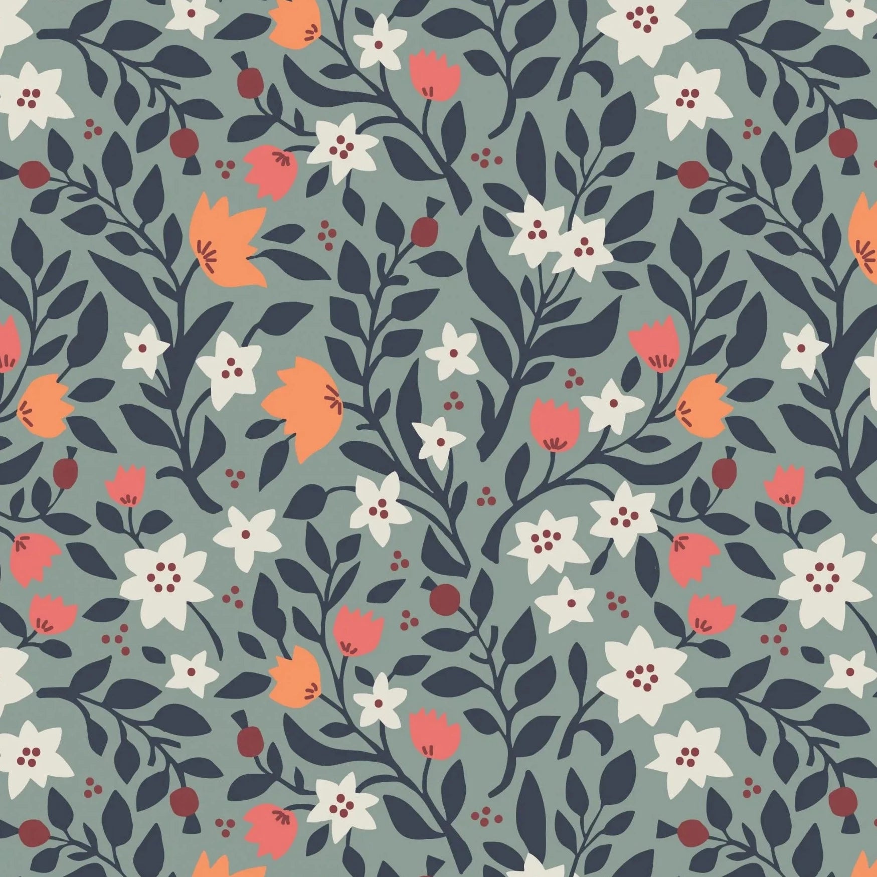 Lewis and Irene are back with a new look collection, in collaboration with designer Jo Rose. This gorgeous floral collection is inspired by folk illustration and cross stitch flowers, offering a modern alternative to a classic floral. We love this busy allover print that is maximum floral love!
