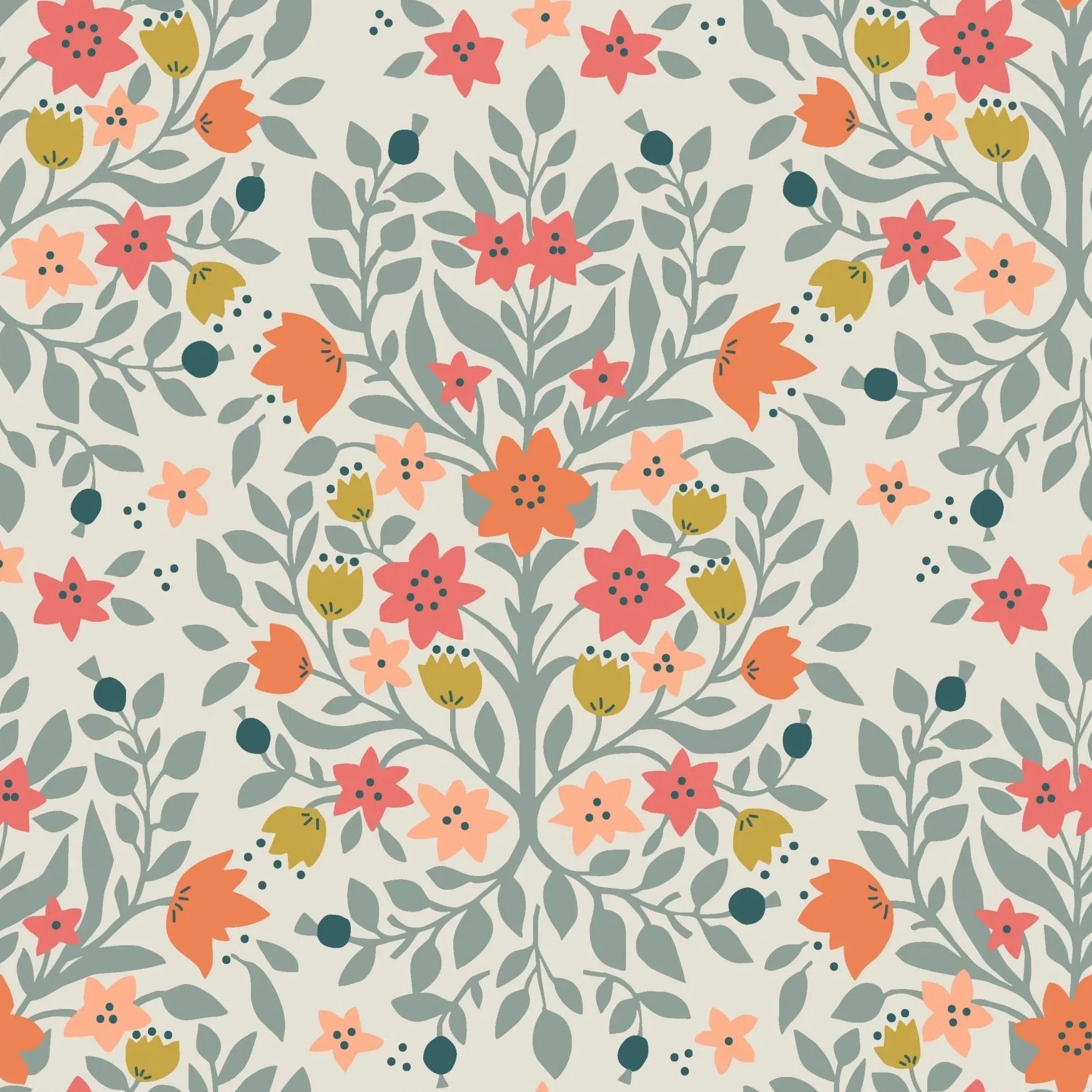 Lewis & Irene Folk Floral - Damask Cream - 100% Cotton Fabric