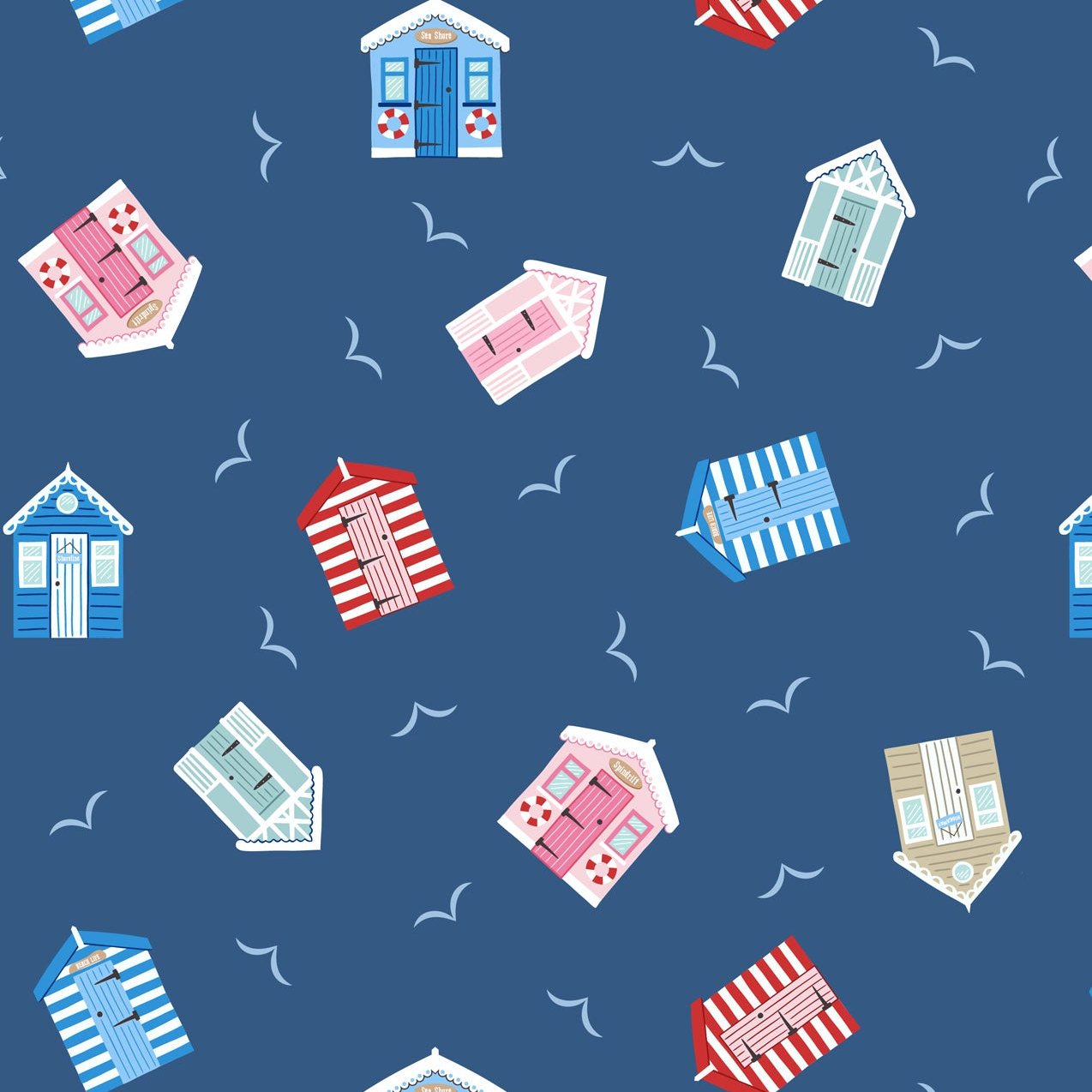 Lewis & Irene Small Things Coastal - Beach Huts Dark Blue - 100% Cotton Fabric