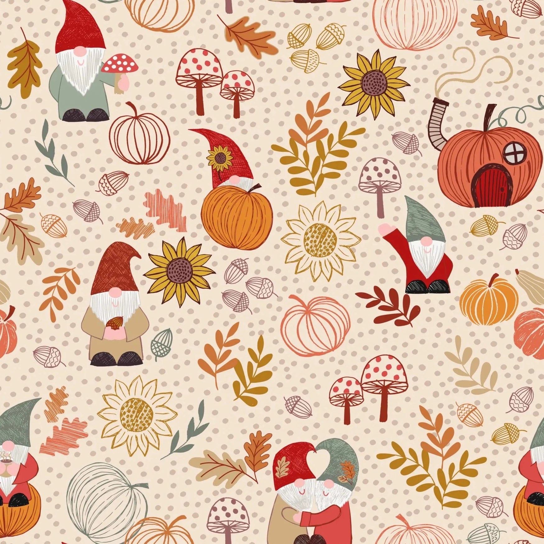 Get snuggly with this cosy autumnal collection from Lewis and Irene. Made in warm shades of cream, orange, rust and brown, it features some of your favourite snuggly scenes. How fun is this autumn gnome print, complete with pumpkin houses? Ideal for a more muted project, whether for quilting, dressmaking or accessories.- Brand: Lewis & Irene