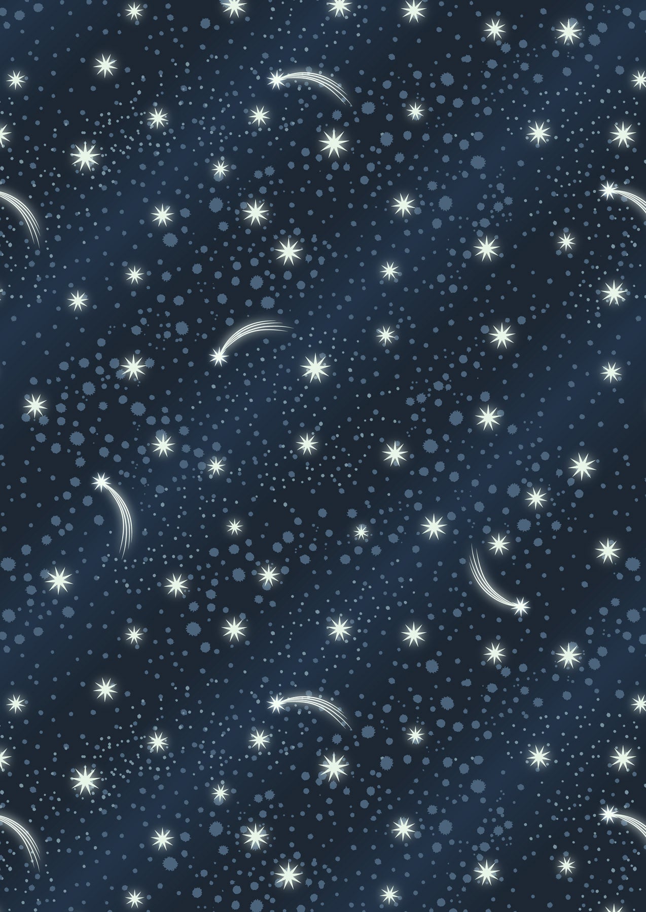 Lewis & Irene Space Glow - Glow Stars Midnight Blue (glow in the dark) - 100% Cotton Fabric