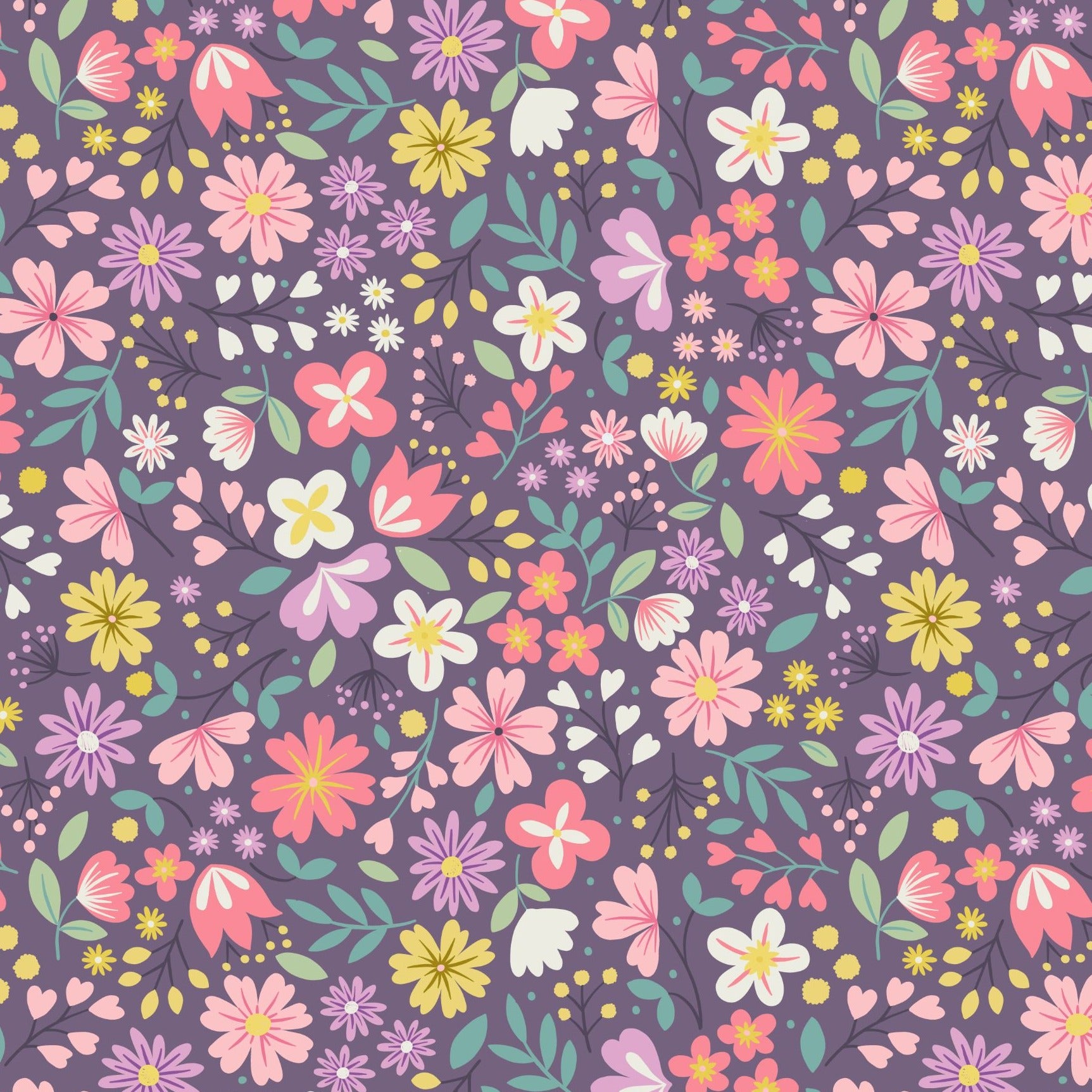 Lewis & Irene Spring Treats - Spring Floral Dark Violet - 100% Cotton Fabric