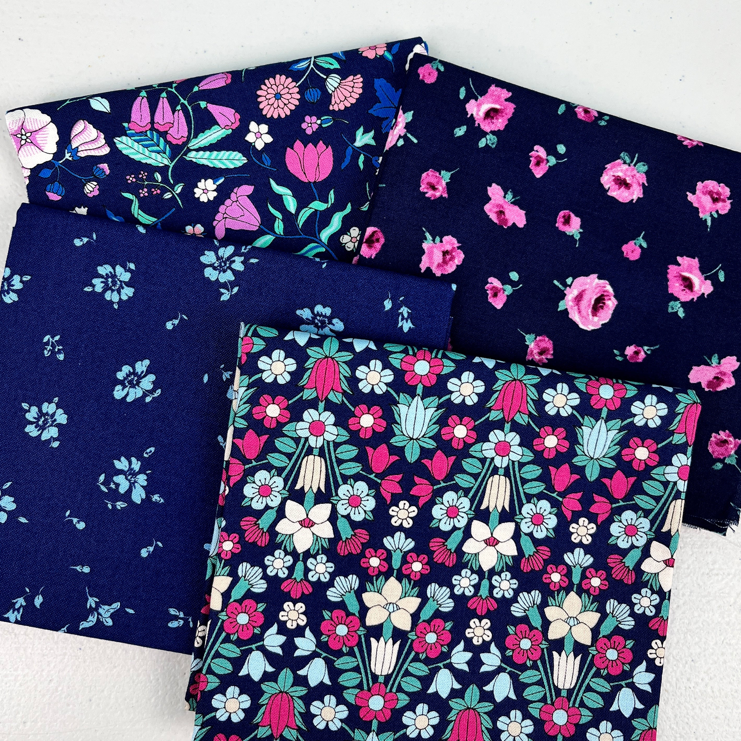 Who can resist a bit of Liberty? We certainly can't! This set of fat quarters features a darker take on classic Liberty florals, including a mix of styles and illustrations in a gorgeous navy, pink and blue colourway.