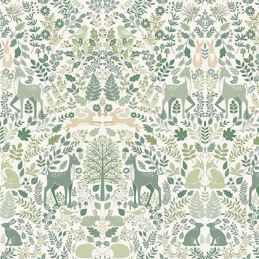 Makower Foxwood - Dawn Trail Green - 100% Cotton Fabric