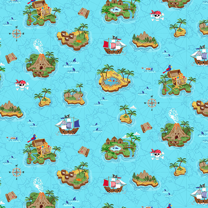 Makower Pirates - Islands Blue - 100% Cotton Fabric