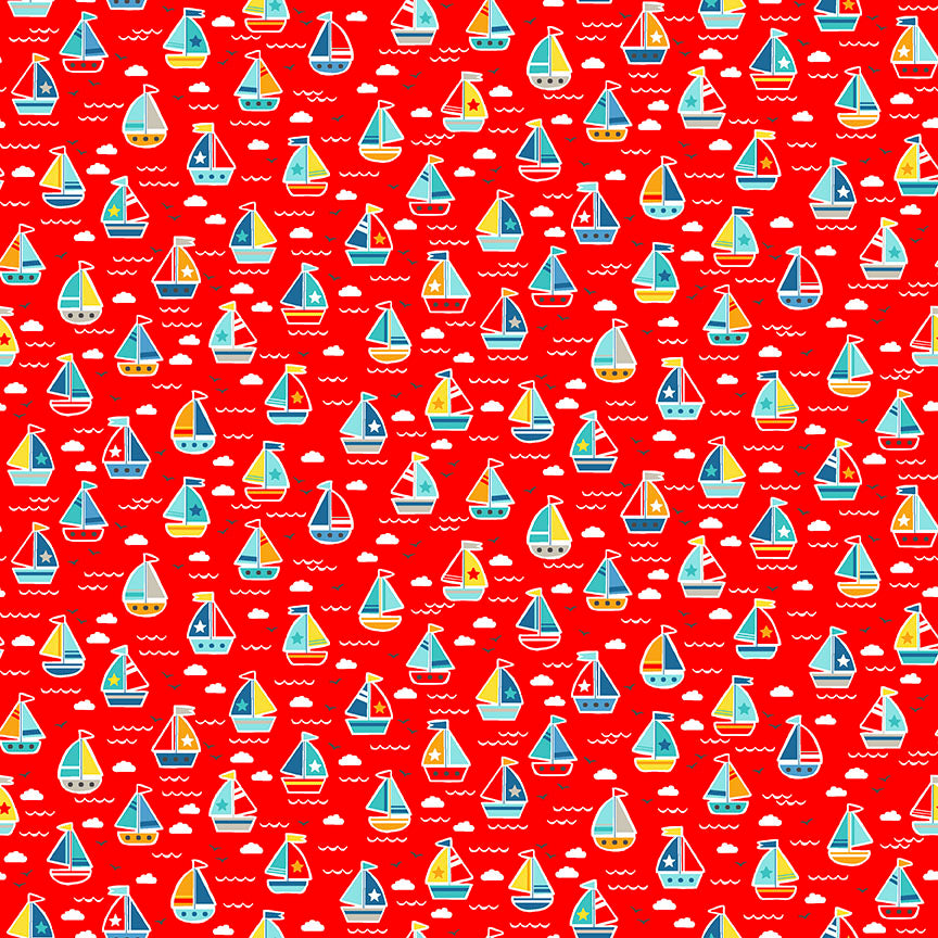 Makower Pool Party - Boats Red - 100% Cotton Fabric