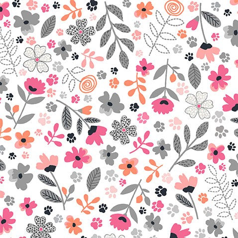 Michael Miller Meowgical - Garden Paws White - 100% Cotton Fabric