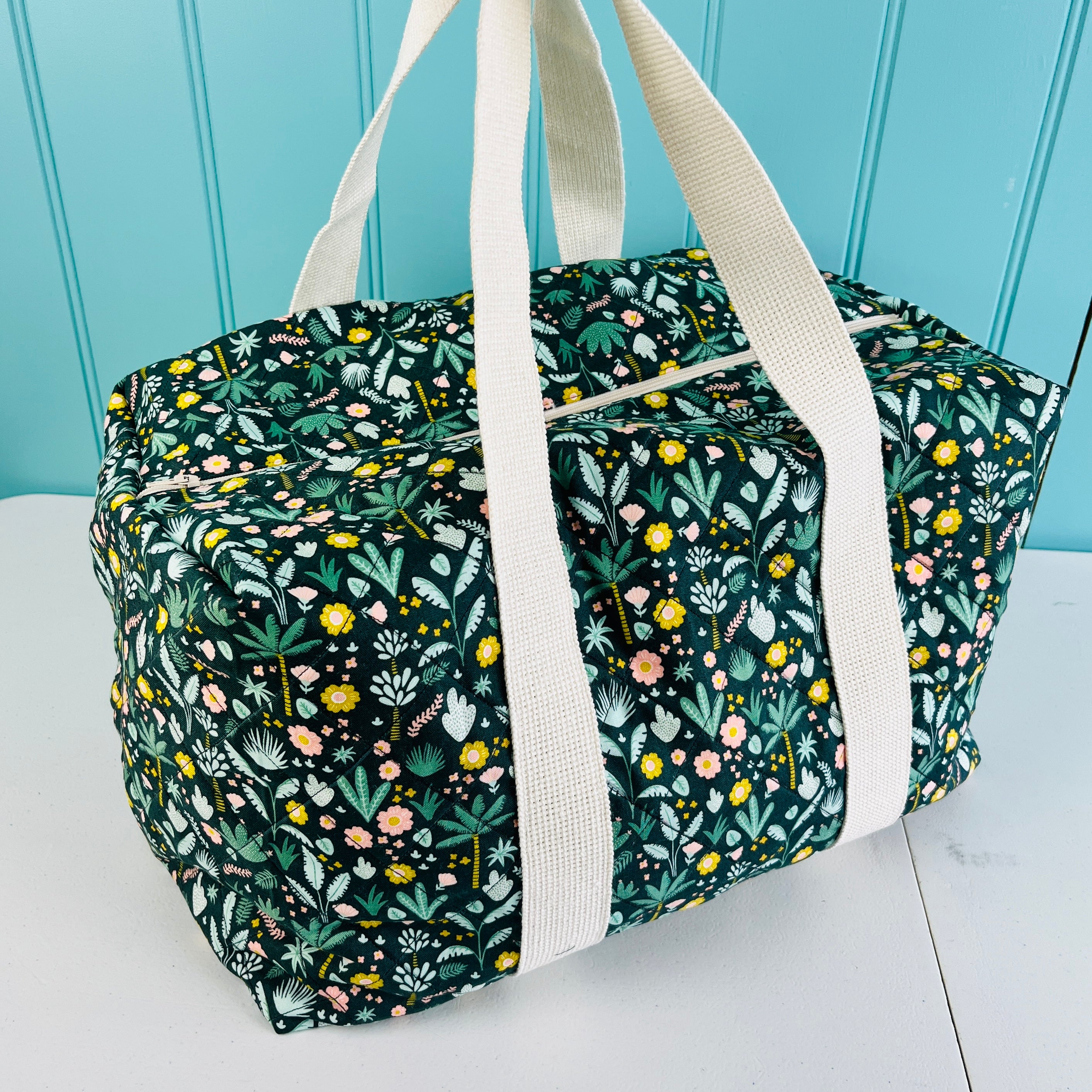 Travel in style with this cute duffle bag! Finished in classic style, it features a quilted outer fabric, fully lined interior and durable webbing handles - plus there's plenty of space for a weekend's worth of outfits. In this project, you'll learn how to quilt your own fabric as well as sew a simple zip.