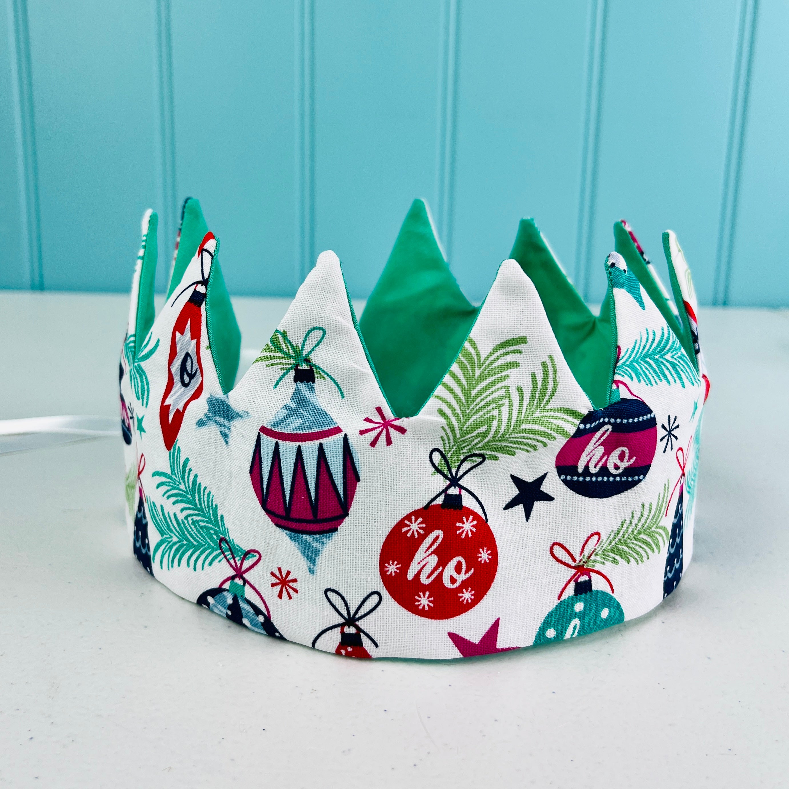 Make your own set of fabric crowns to wear on Christmas day for an eco-friendly alternative to paper hats. They're beginner-friendly with simple straight-line sewing, and also fit inside our re-usable Christmas crackers project too!