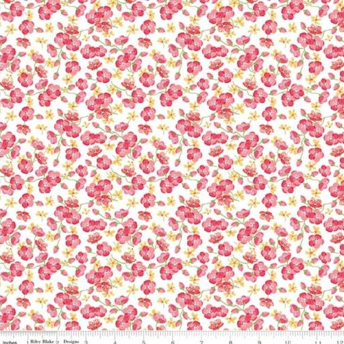 Classic florals get a fresh twist with this summery watercolour style print from Riley Blake. In a beautiful soft palette of pink, white and yellow, this busy floral print is pretty and sophisticated for those who prefer a more classic look. This fabric makes it an excellent choice for a smart skirt or dress, as well as a patchwork with larger blocks or piecing.
