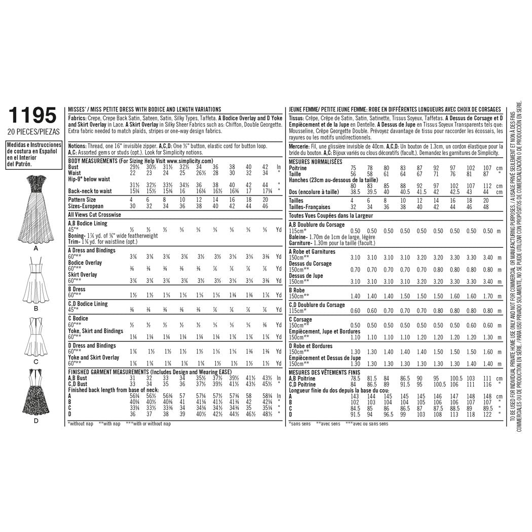 Simplicity Sewing Pattern 1195 - Women's and Petite Special Occasion Dress
