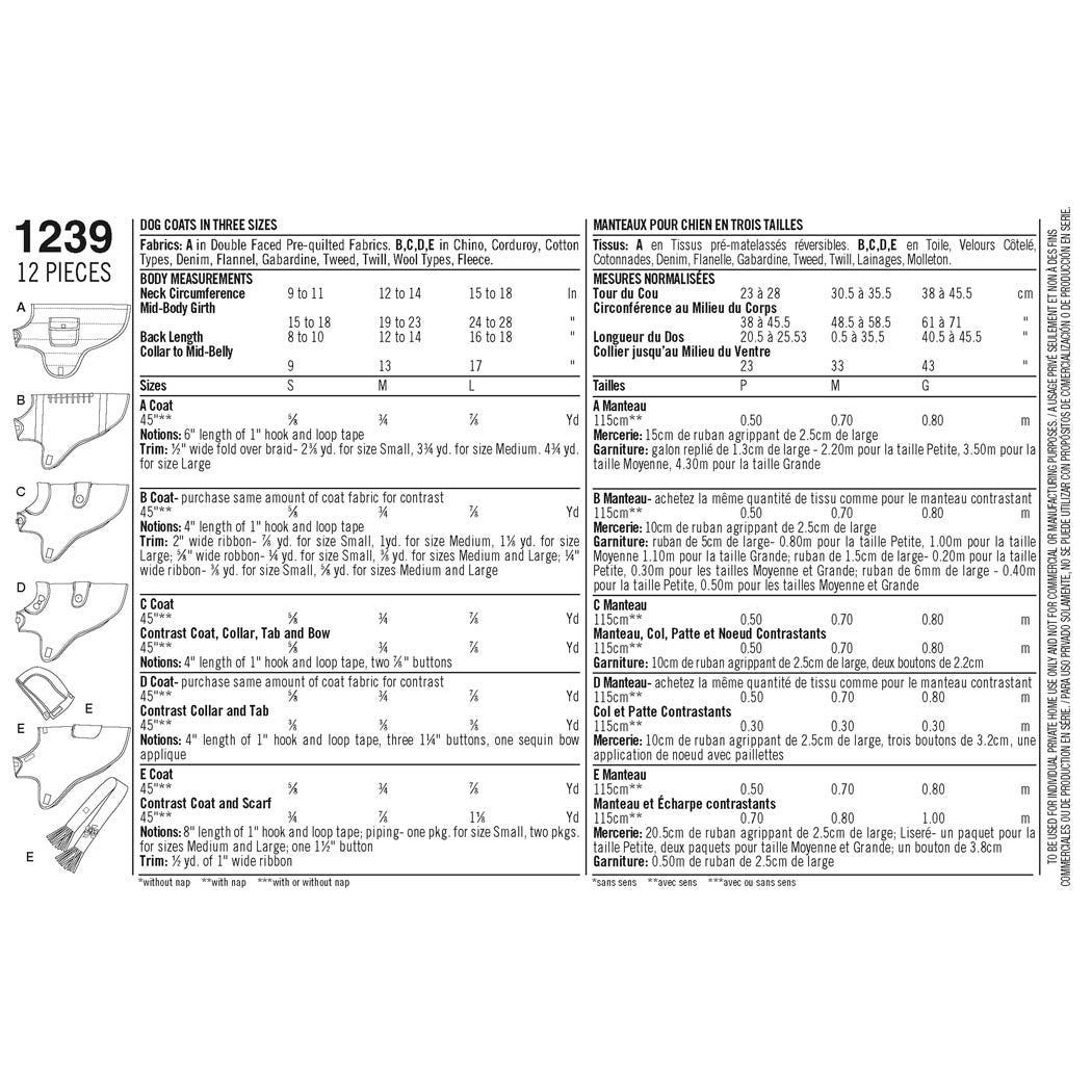 Simplicity Sewing Pattern 1239 - Dog Coats in Three Sizes