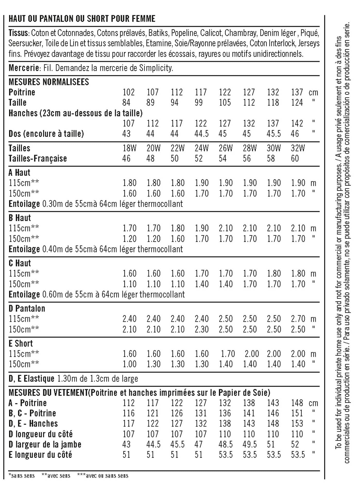 Make comfortable, easy Plus Size coordinates. Trousers and shorts have elastic waist. Make a sleeveless top with notched collar and darts, a short sleeve scoop neck with split sleeve or short sleeve v neck with darts.