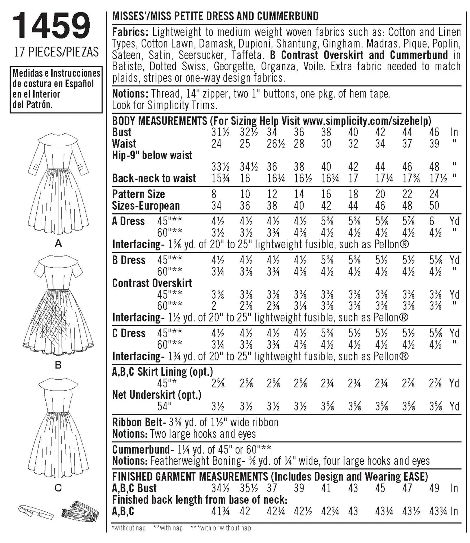 Simplicity Sewing Pattern 1459 - Women's and Petite 1950's Vintage Dress