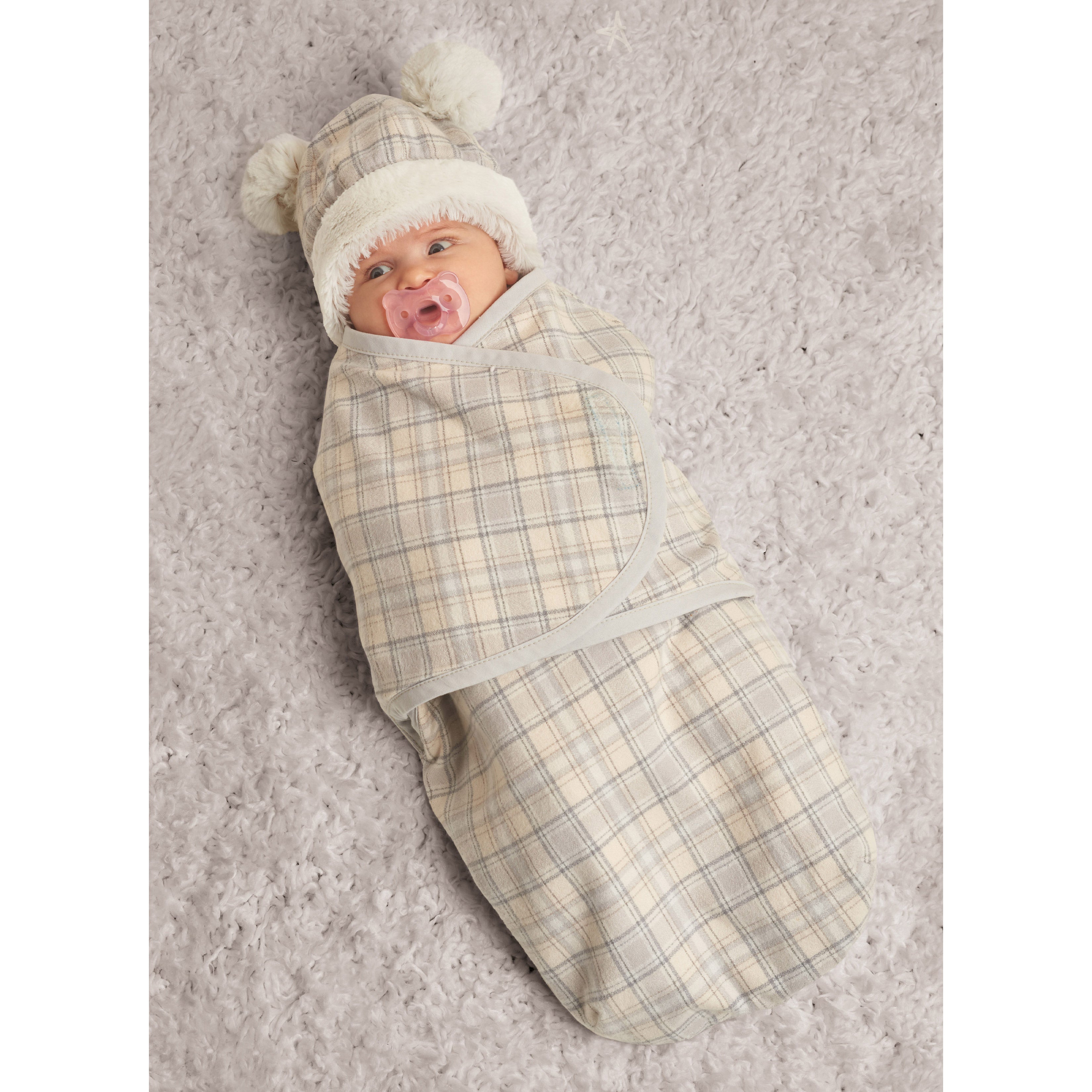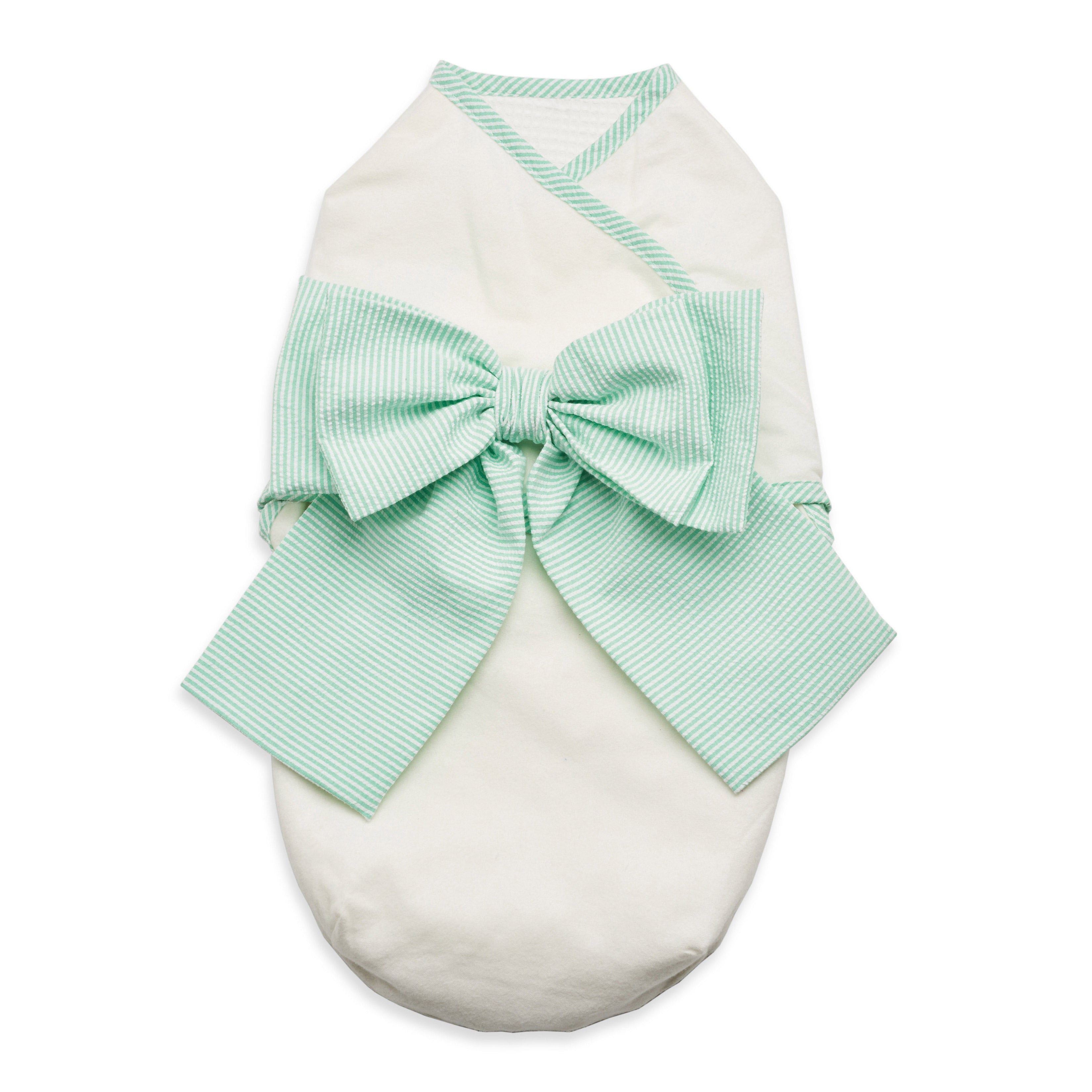 Bring home baby in lined buntings with contrast bias binding, hook and loop tape closures and oversized bow and rosette options. Lined hats in three sizes S (17"), M (18"), L (19") have contrast bands and optional rosette, pom pom ears or flower crown embellishments.