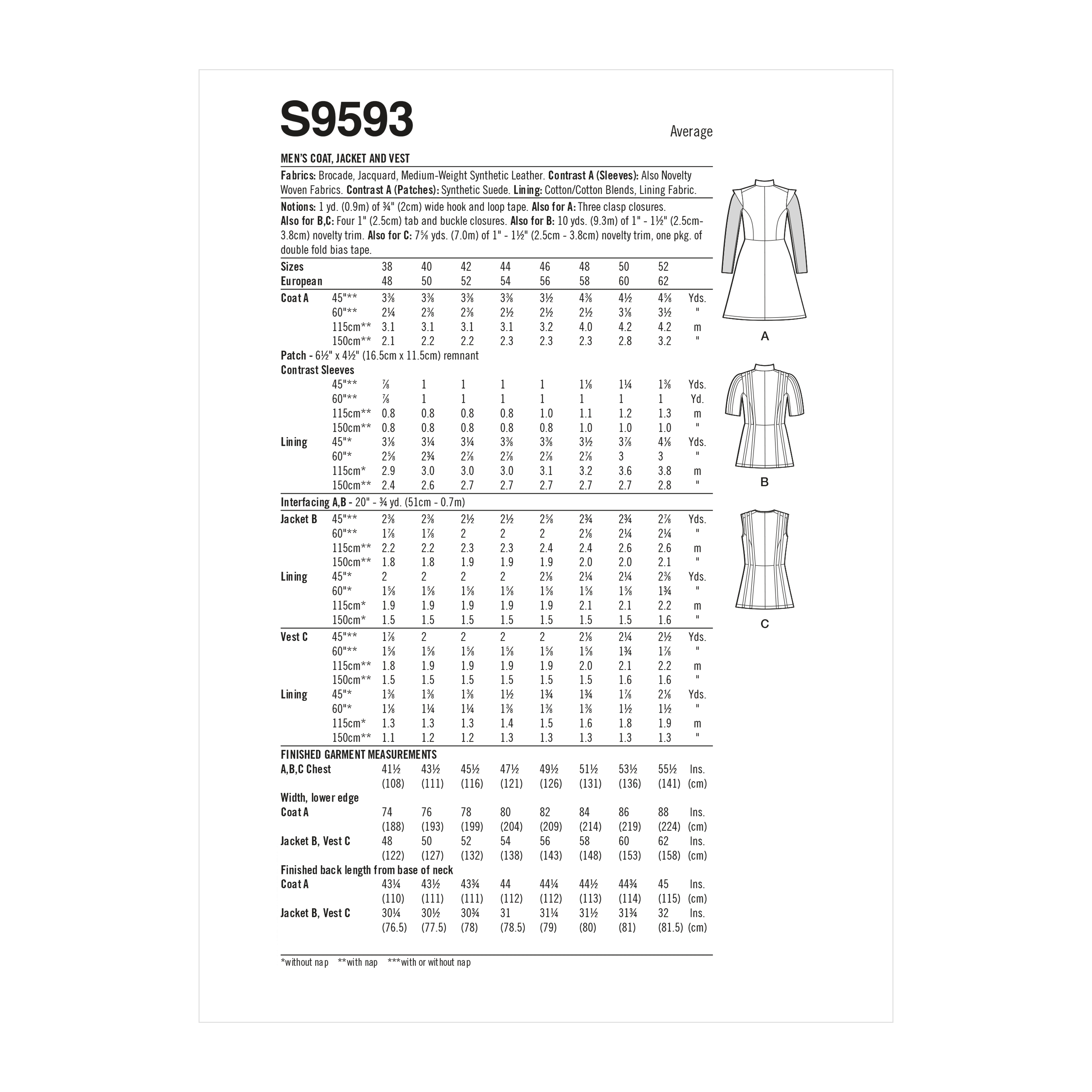 Simplicity Sewing Pattern S9593 - Men's Coat, Jacket and Vest