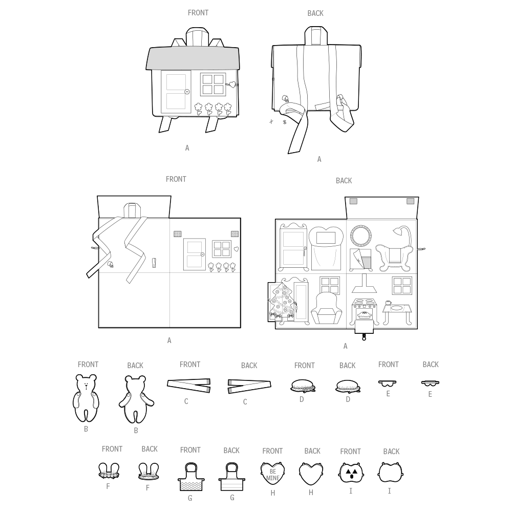 Simplicity Sewing Pattern S9976 - Doll House Backpack with Bear