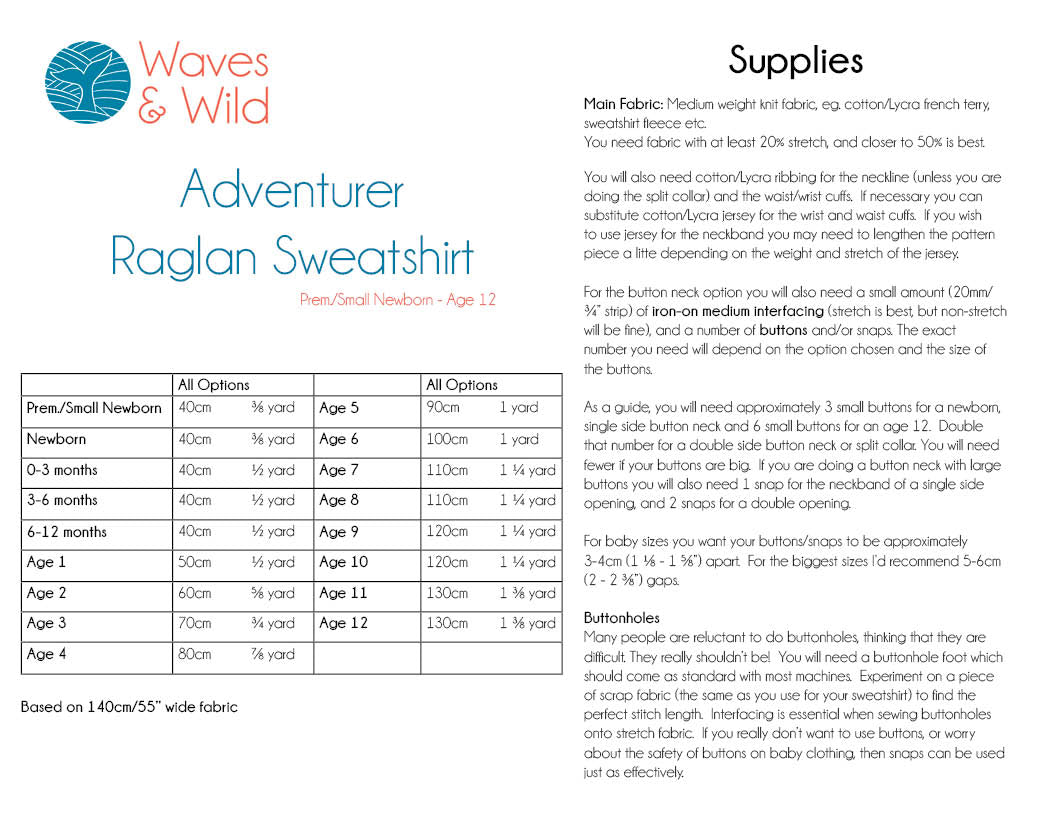 Waves & Wild Children's Adventurer Raglan Sweatshirt - PDF sewing pattern