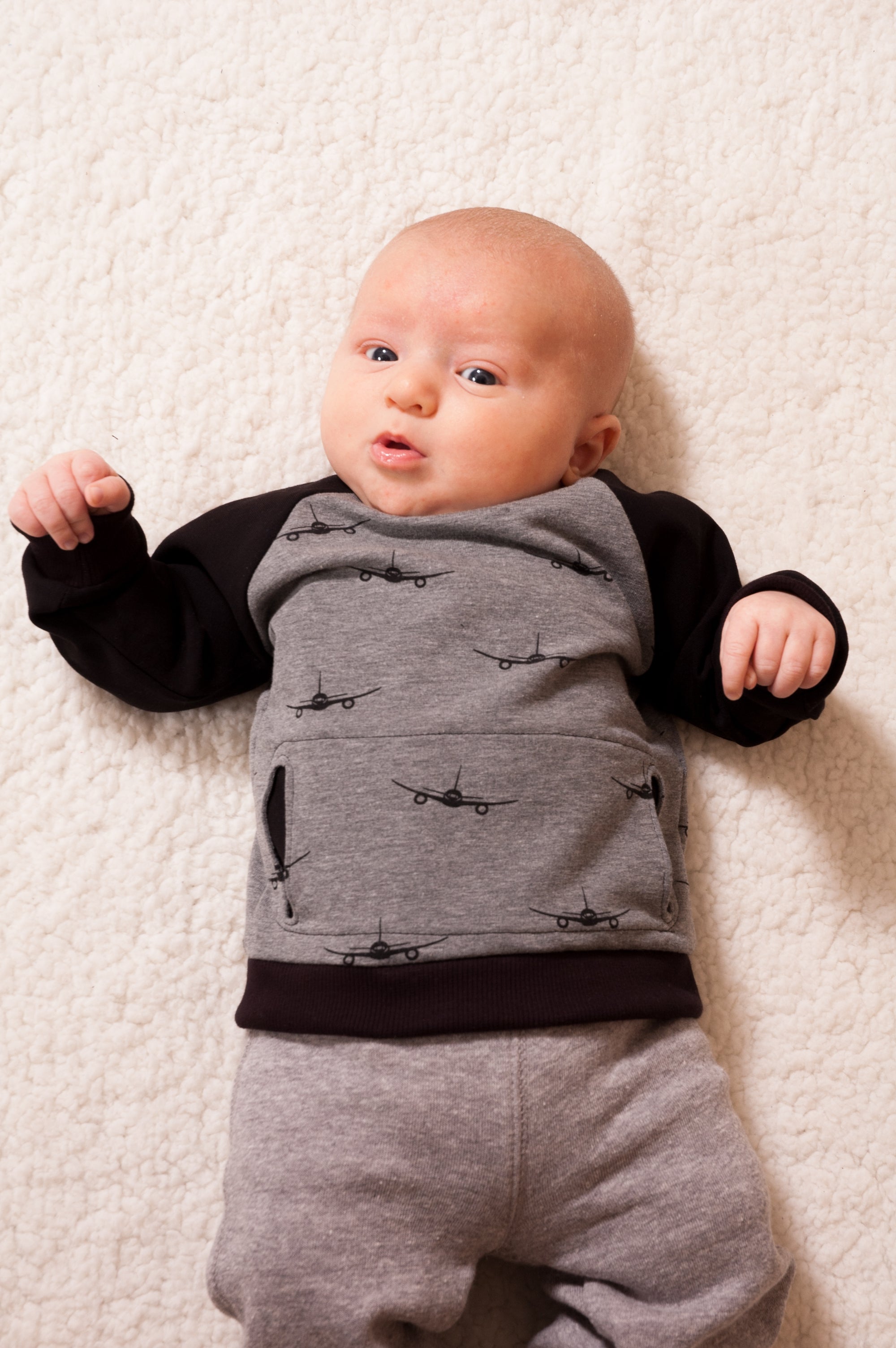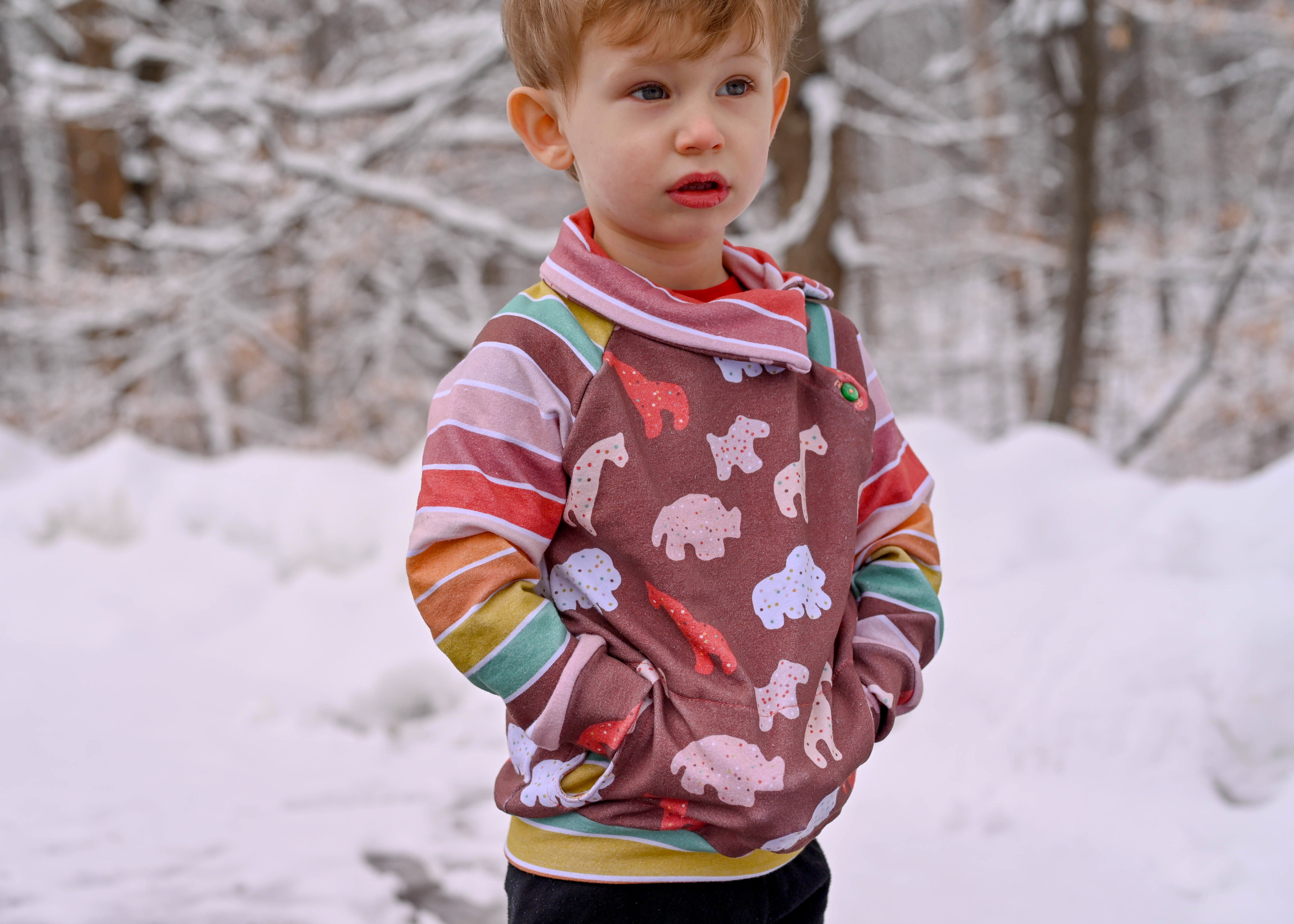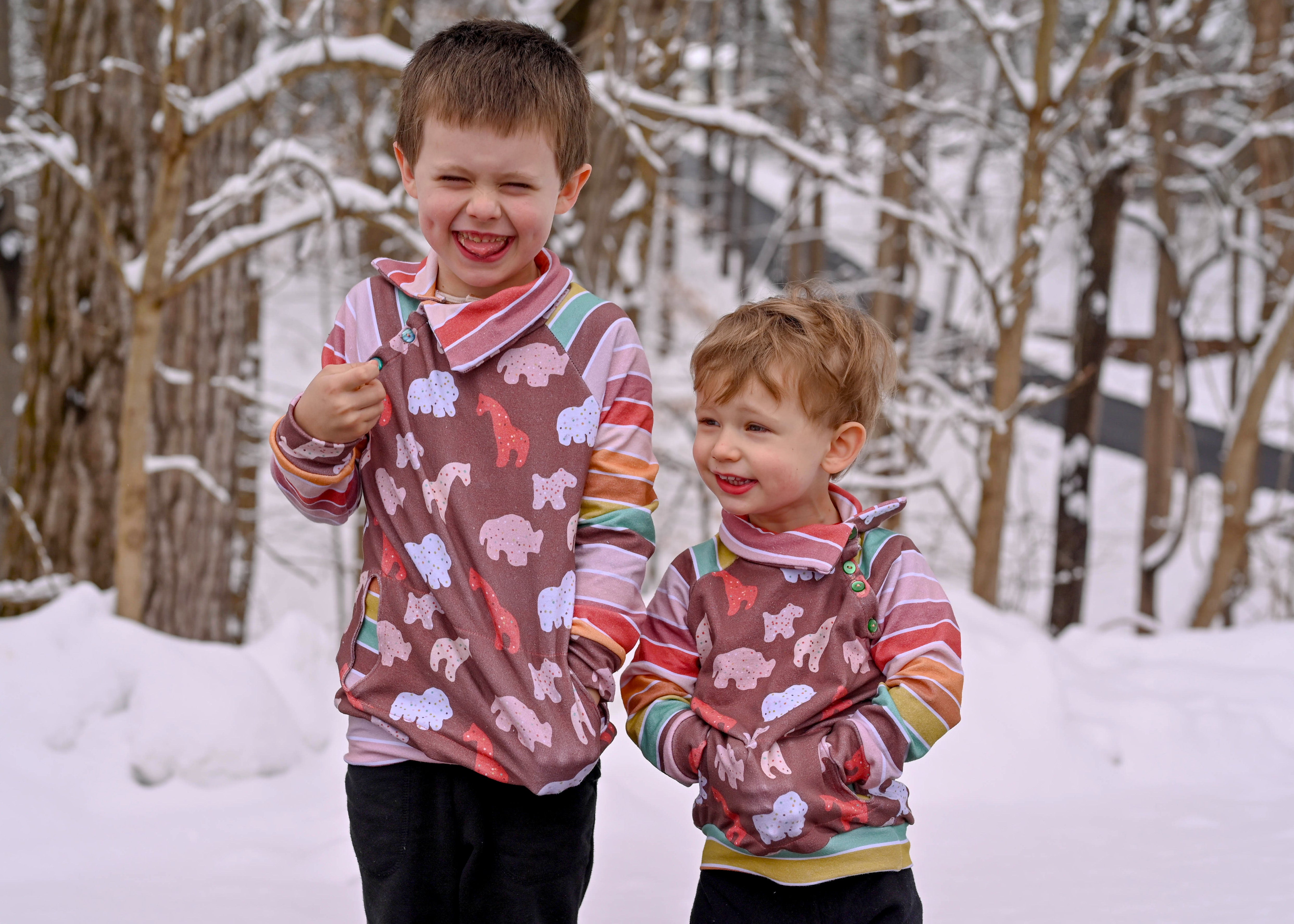 The pattern works best when made from french terry or sweatshirt fleece, but any medium weight stretch fabric would be suitable.