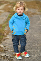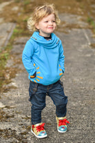 The Child Cottesloe Cowl has a relaxed fit. Choose between a kanga patch pocket, semi-circle through pockets or no pockets! Additionally, there is an option for a faux or functional drawstring detail.