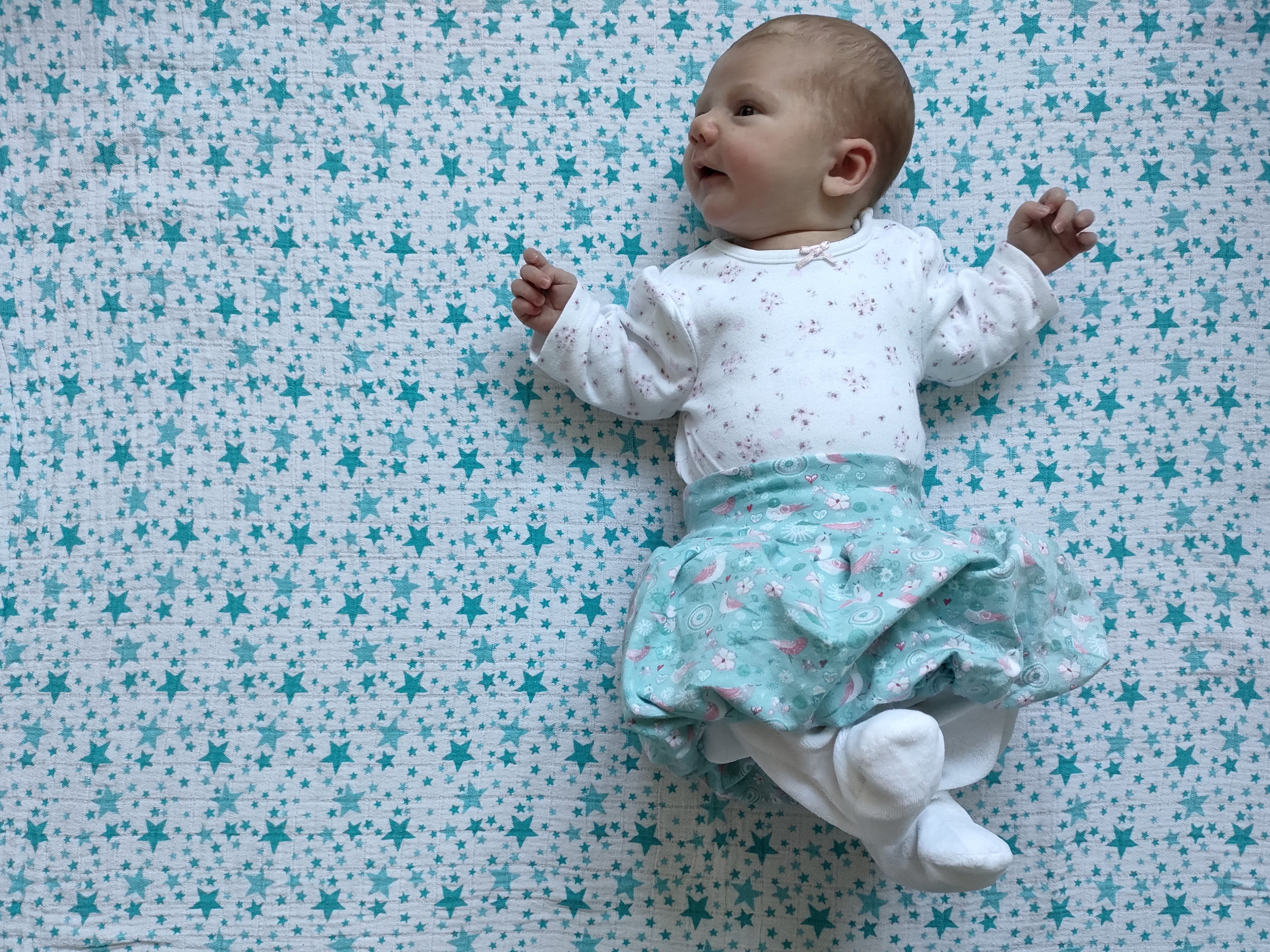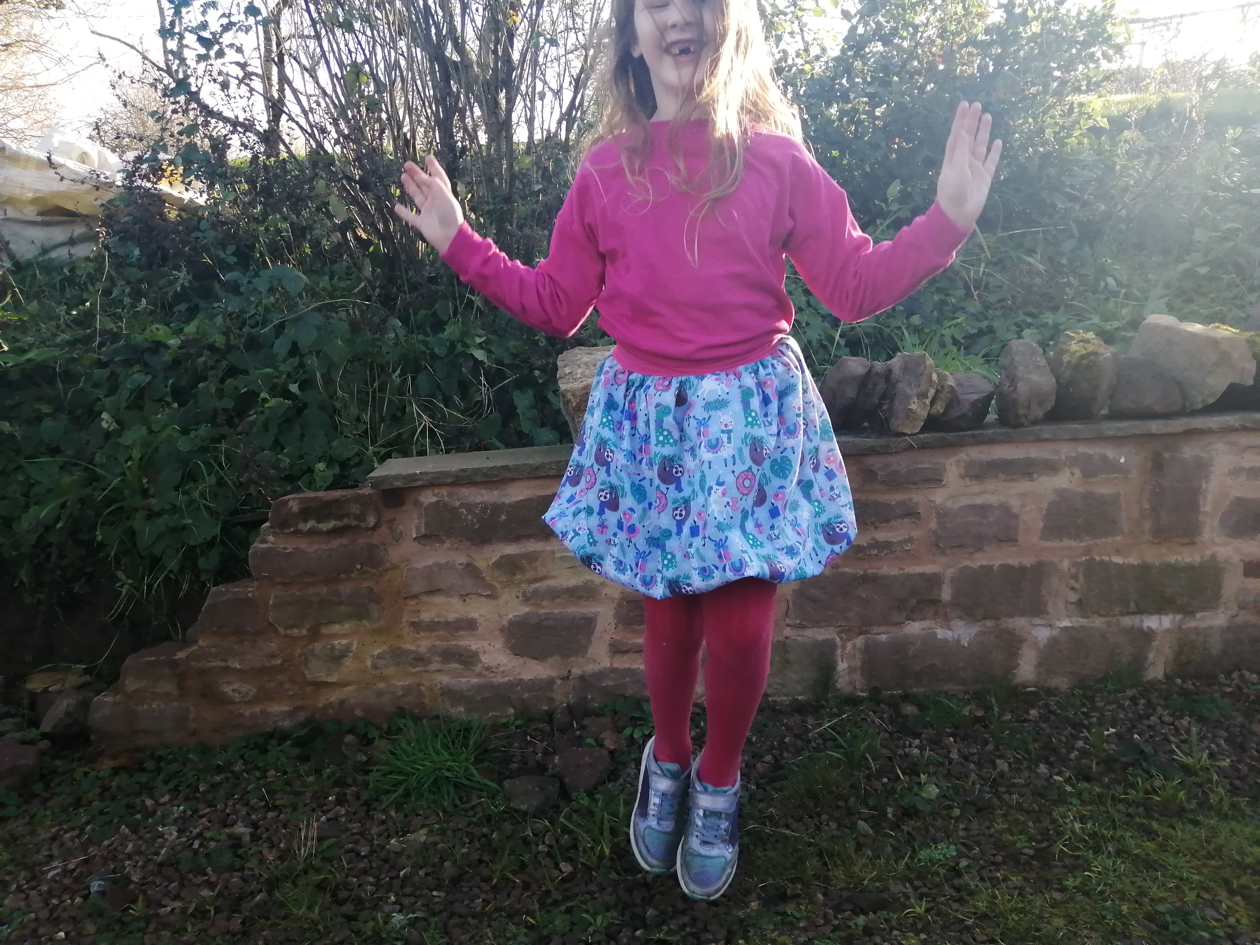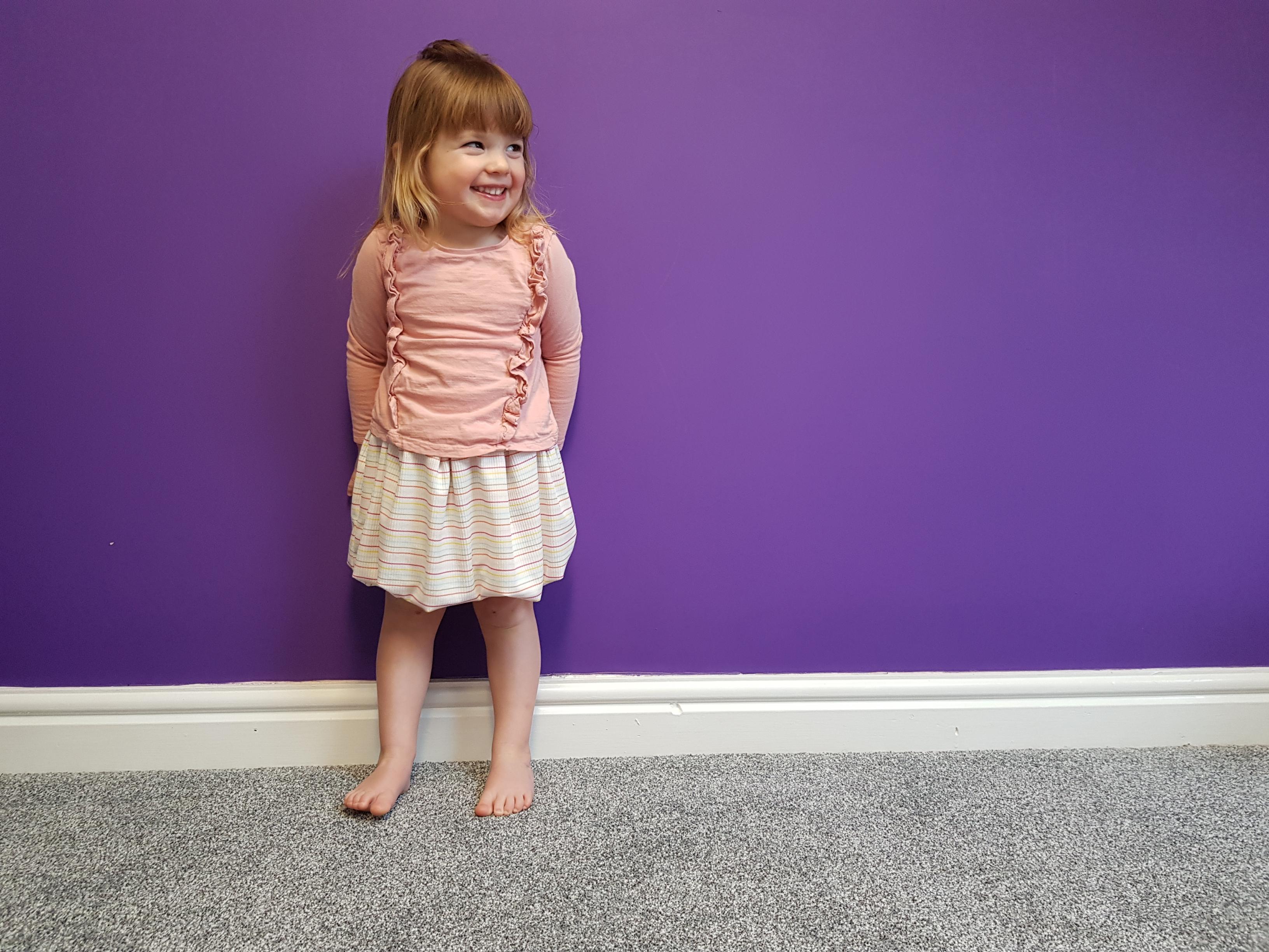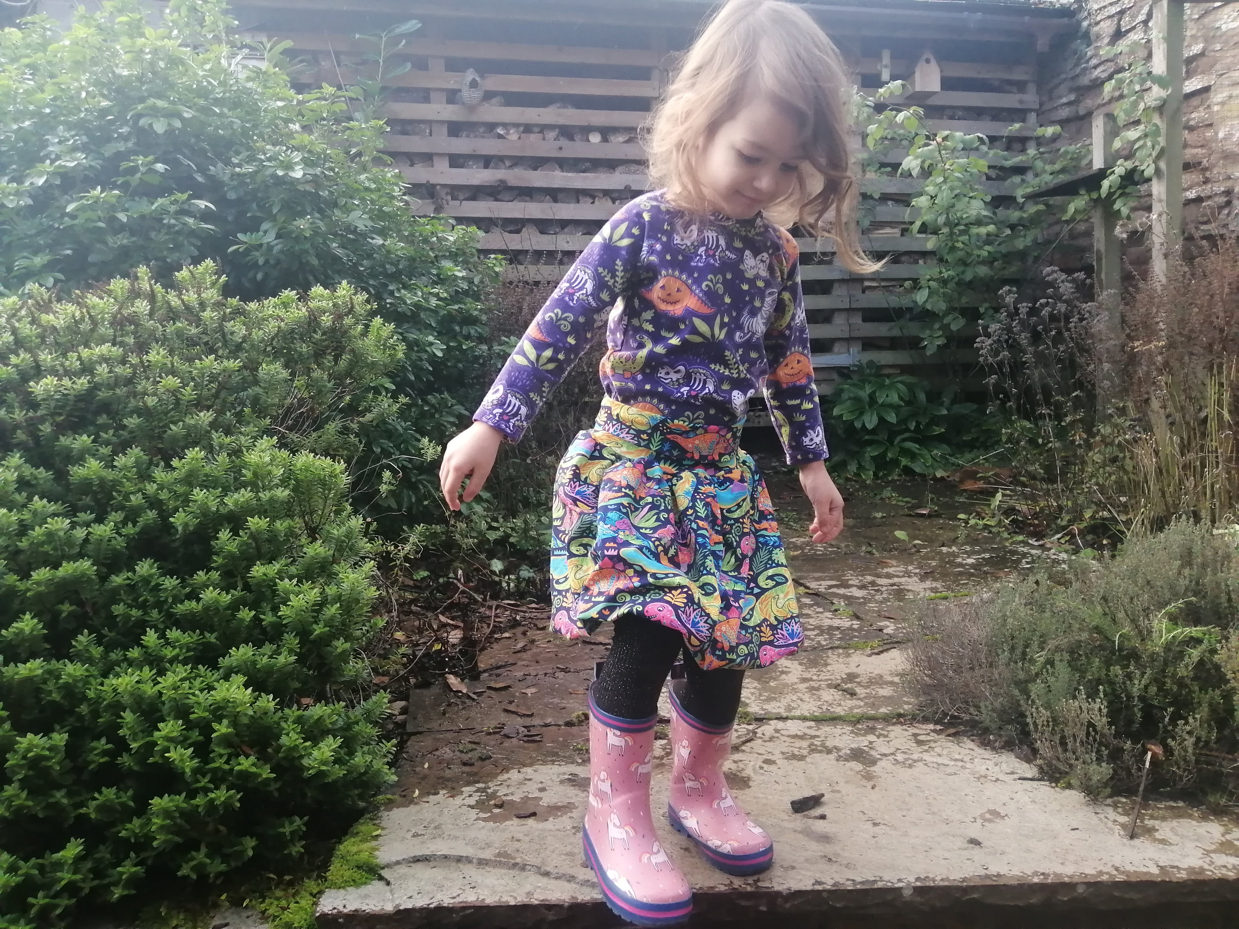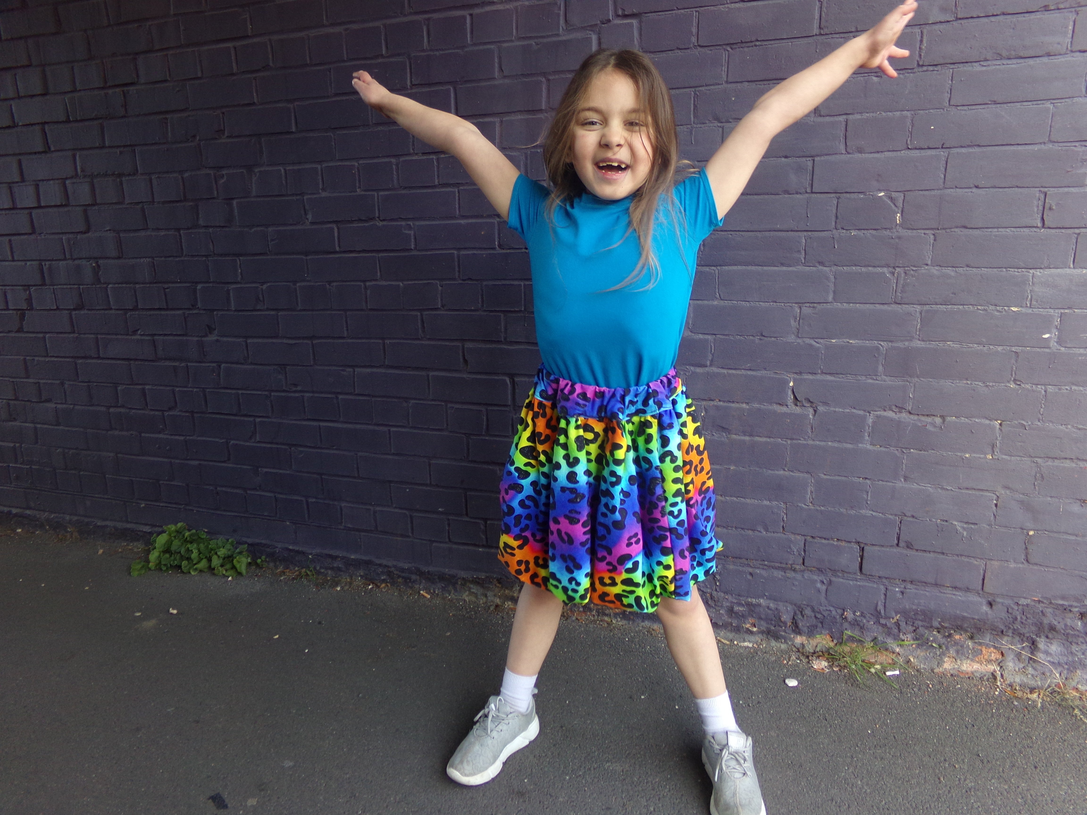 The Double Bubble Skirt pattern goes from Prem./Small Newborn – Age 12. It is suitable for enthusiastic beginners.