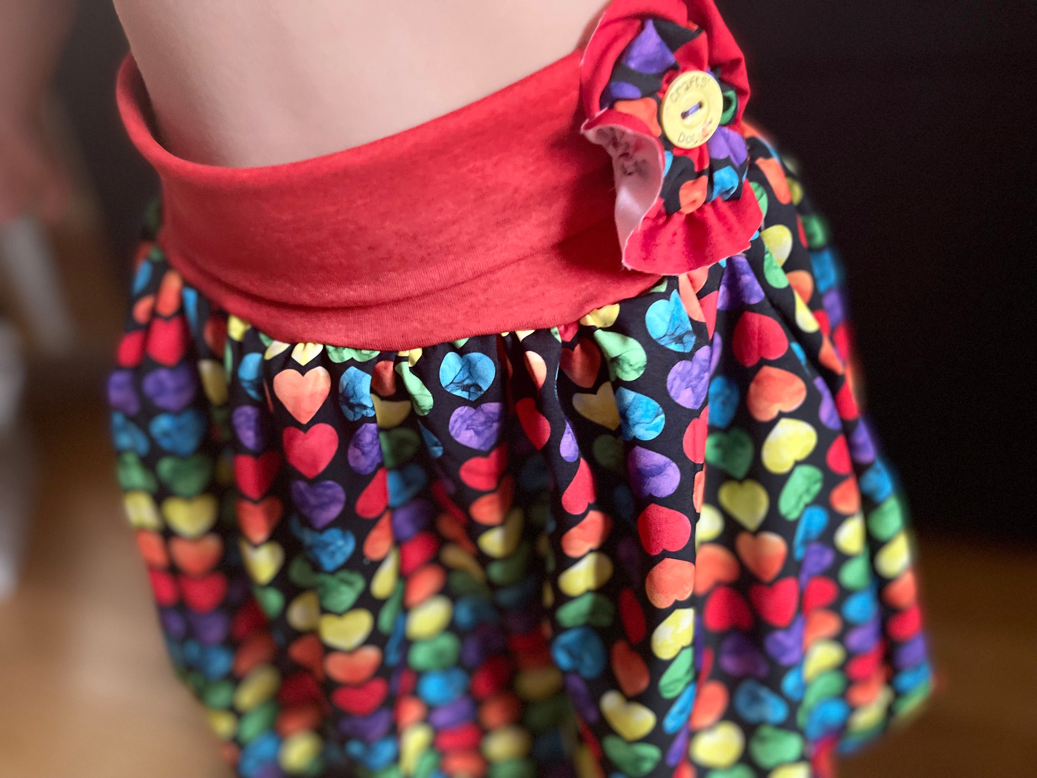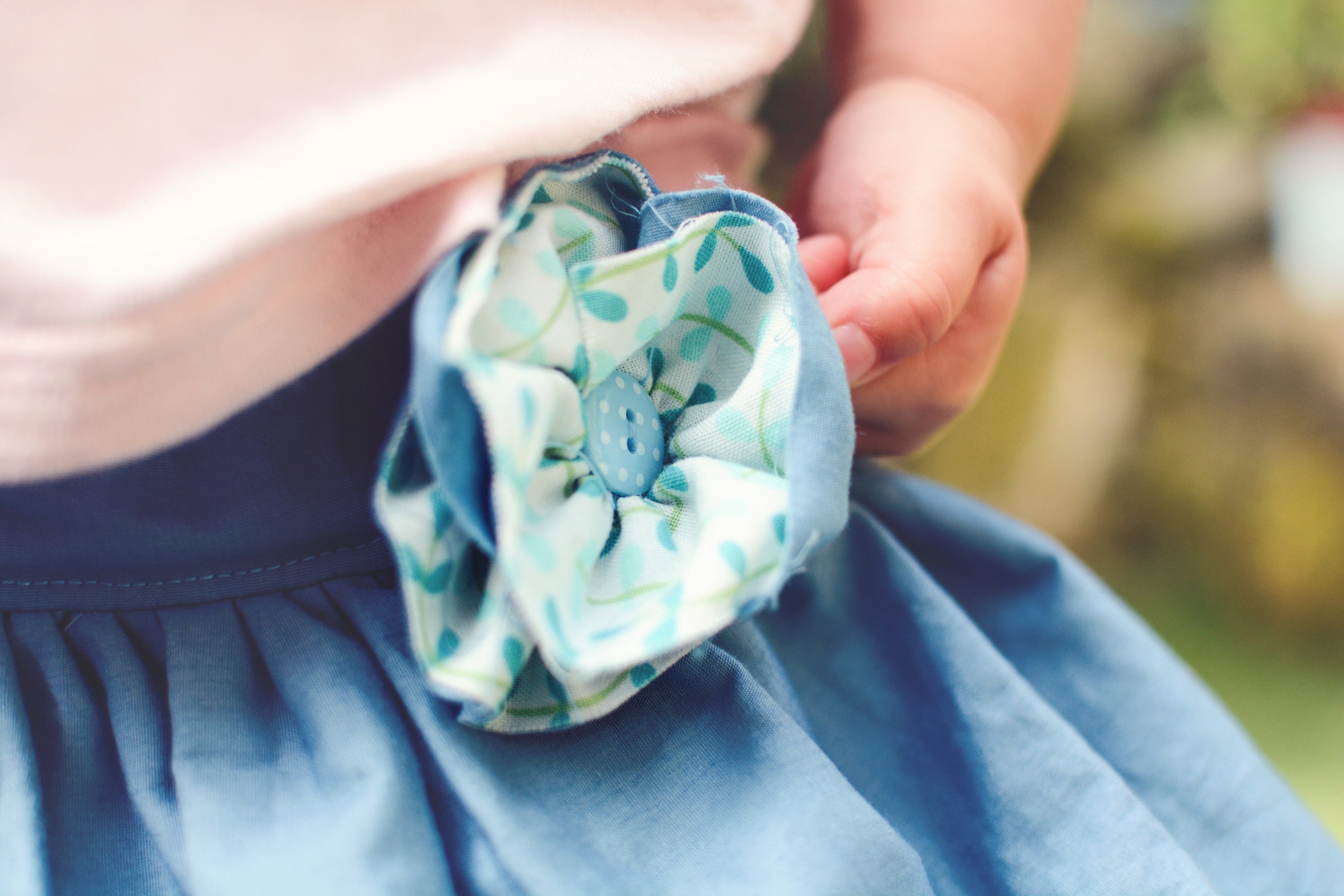 The Double Bubble Skirt is a wonderfully simple and super cute skirt pattern. There are options for a yoga waistband or elasticated waistband. You can make and add fabric flower embellishments.