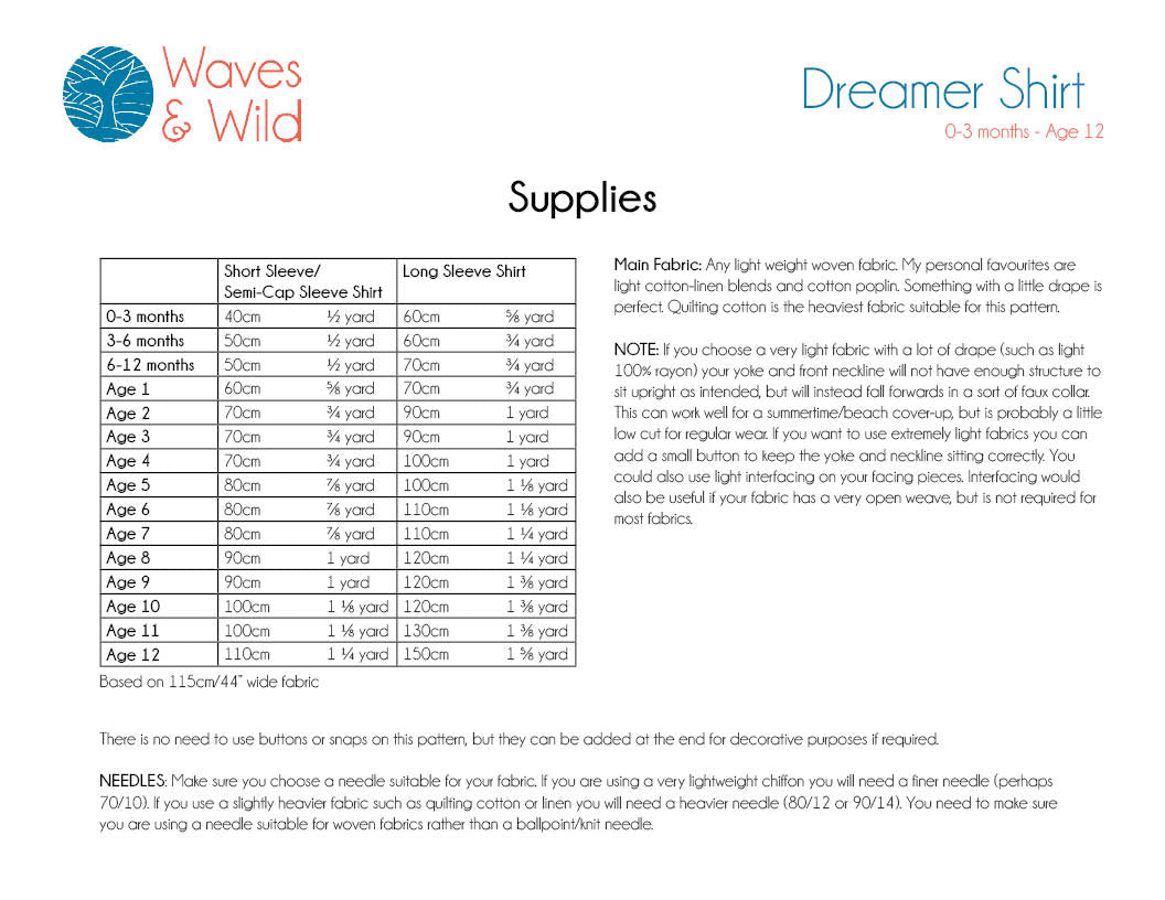 Waves & Wild Children's Dreamer Shirt - PDF sewing pattern